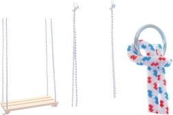 Класическа дървена люлка в естествен цвят за дома и градината. Предлага стабилно и безопасно люлеене, здрав дървен седалков панел 46 × 19 cm, товароносимост 80 kg и издръжливи въжета с дължина 1,7 m. Подходяща за деца от 3 години.