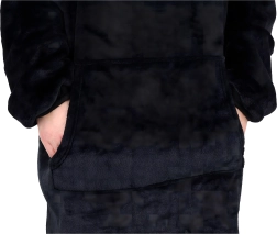 Благодарение на просторната качулка и големия преден джоб имате всичко необходимо под ръка, а главата остава на топло. Черният цвят е класически и лесно се съчетава с всеки интериор. Идеално за излежаване на дивана, четене на книги и дълги филмови маратони.