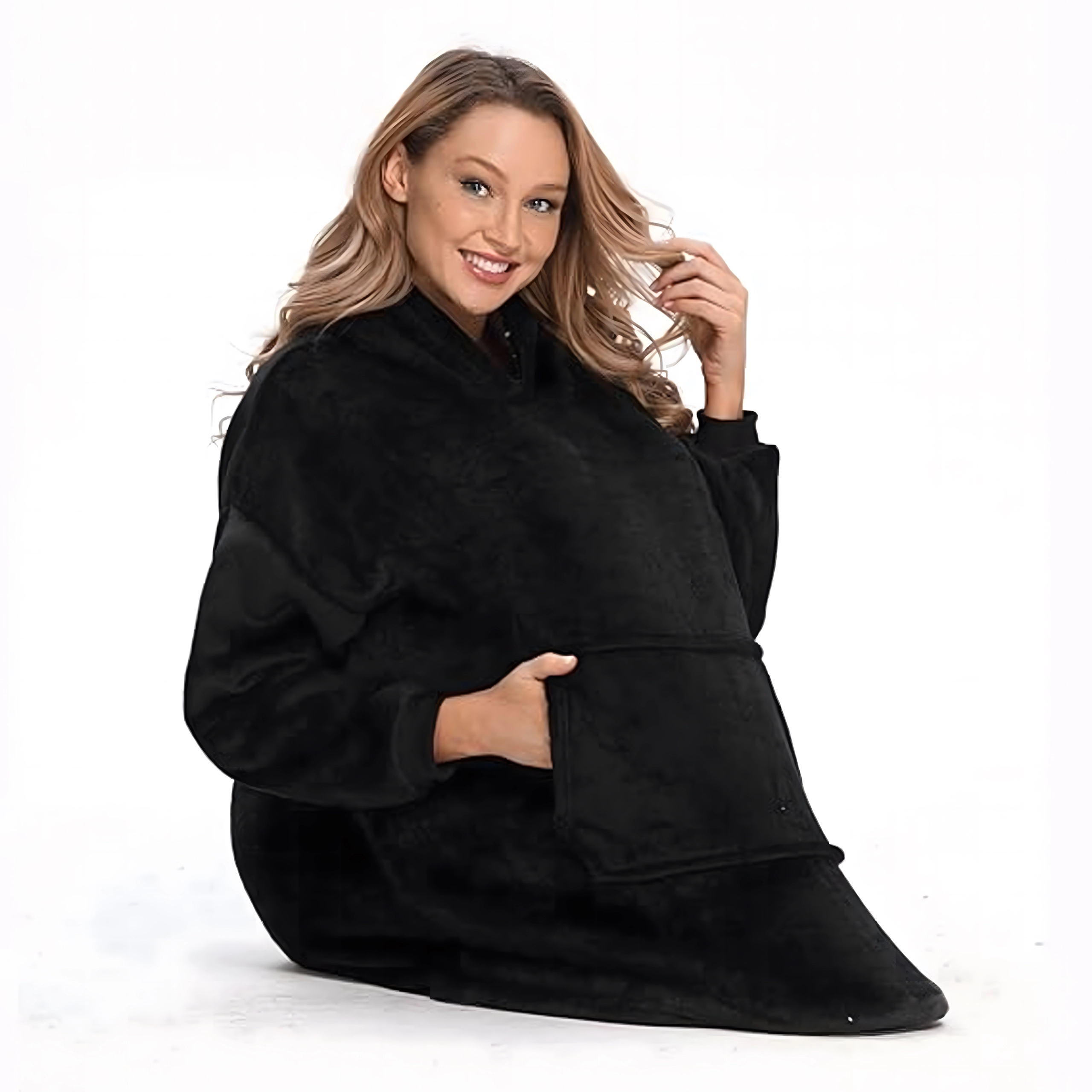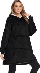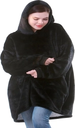 Това носимо одеяло комбинира комфорта на халат и практичността на суичър. Щедрата овърсайз кройка се адаптира към всяка фигура и осигурява приятна топлина от раменете до коленете. Мекият, плюшен материал е приятен на допир и отлично изолира, така че ще се чувствате уютно през целия ден.