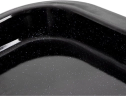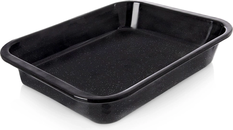 Тази дълбока правоъгълна тава е изработена от висококачествена стомана с устойчиво емайлово покритие, което гарантира дълъг живот, устойчивост на надраскване и лесна поддръжка. Гладката повърхност намалява загарянето и позволява лесно отделяне на ястията.