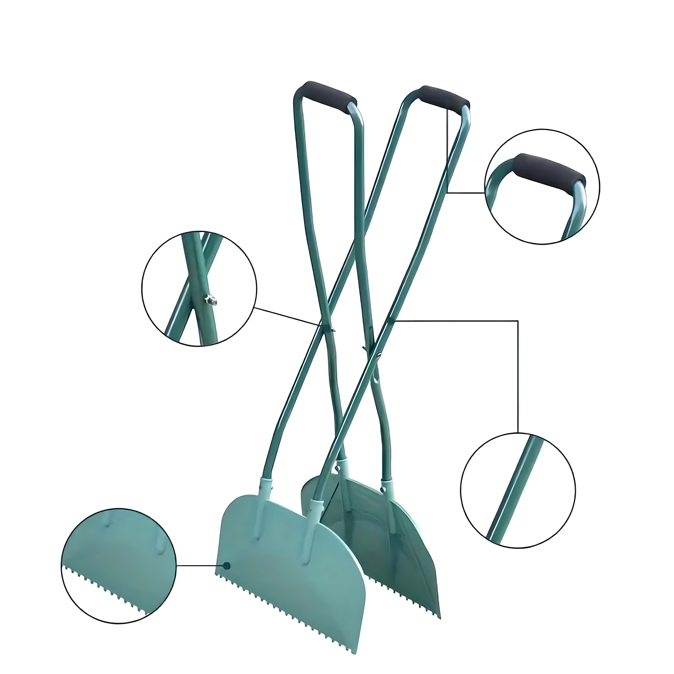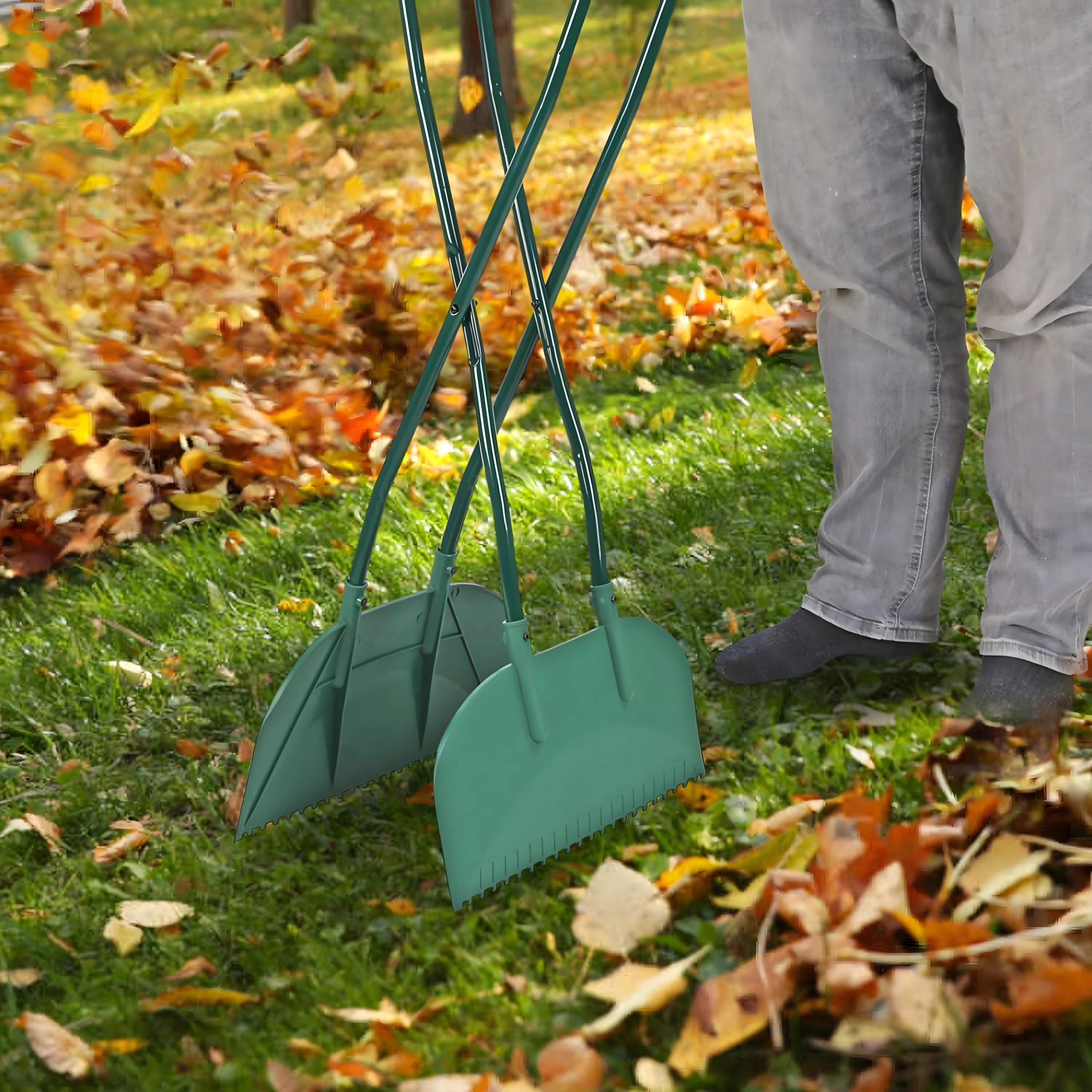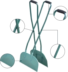 Назъбените ръбове и широките лопатки лесно загребват сухи и леко влажни листа, трева или иглички и ускоряват цялото почистване.