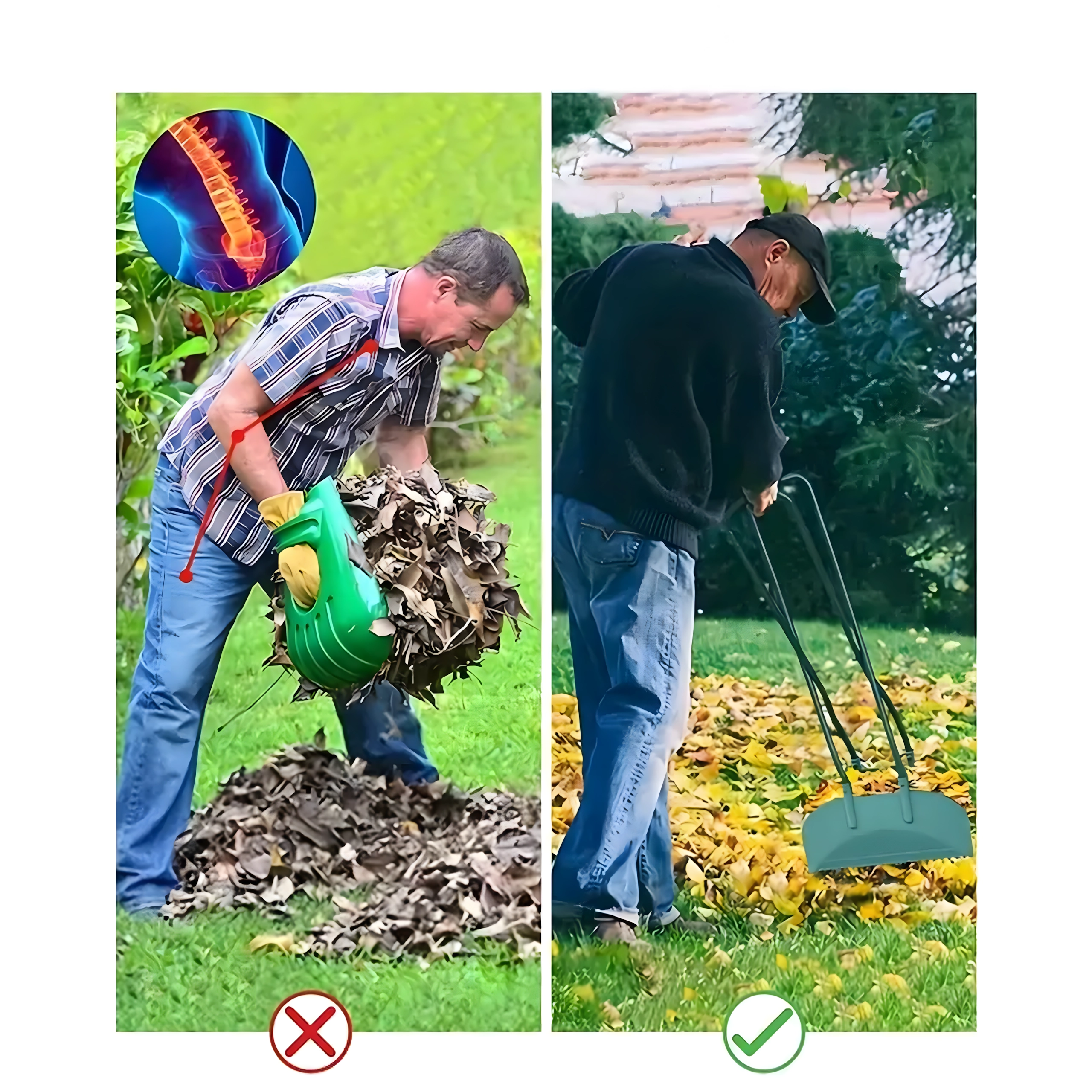 Край на болките в гърба и мръсните ръце. Ергономичният събирач на листа с дълги дръжки позволява работа в изправено положение и ефективно загребване дори на по-големи количества листа и дребни градински отпадъци. Назъбените ръбове улавят по-добре материала, а устойчивото изпълнение гарантира дълъг живот при редовна употреба.