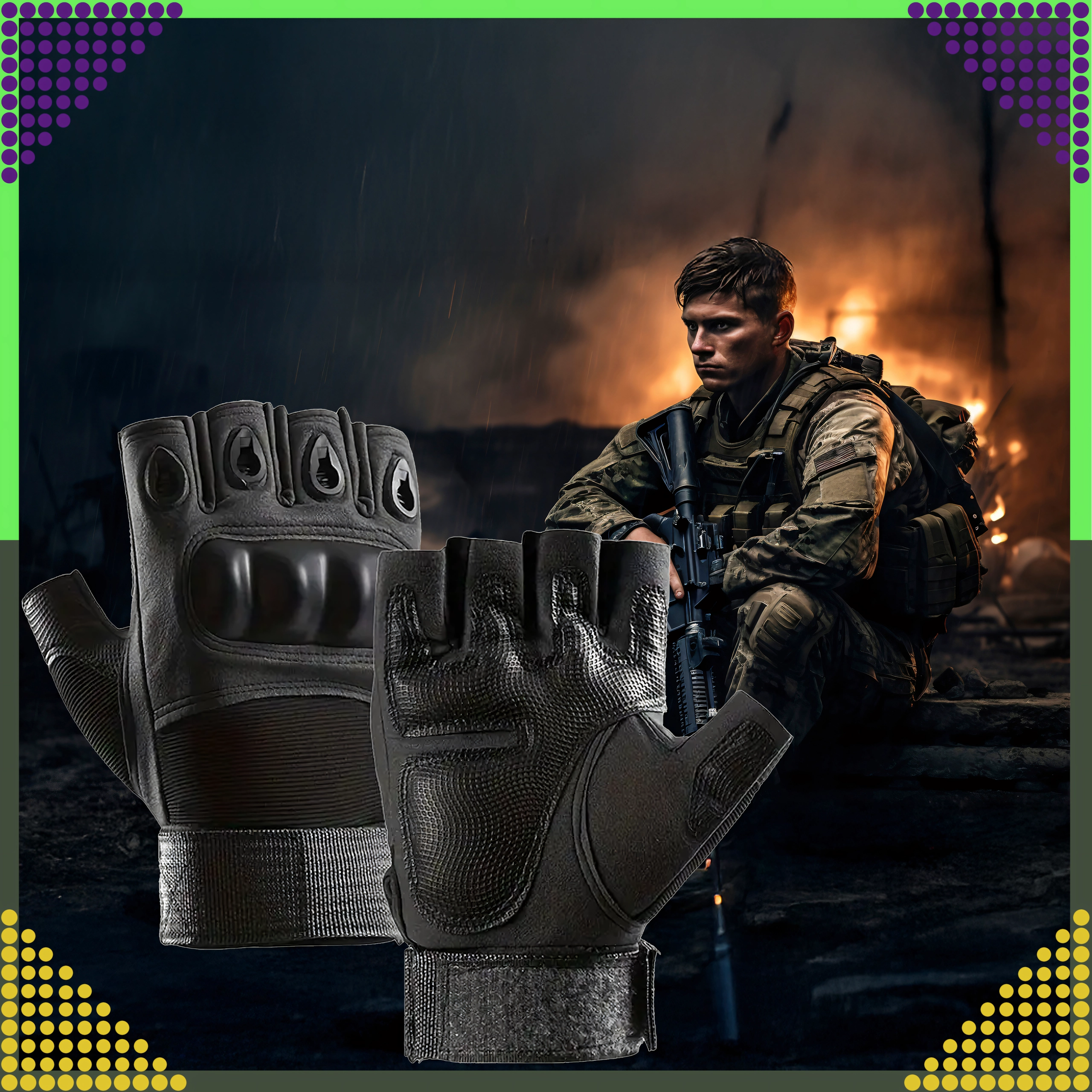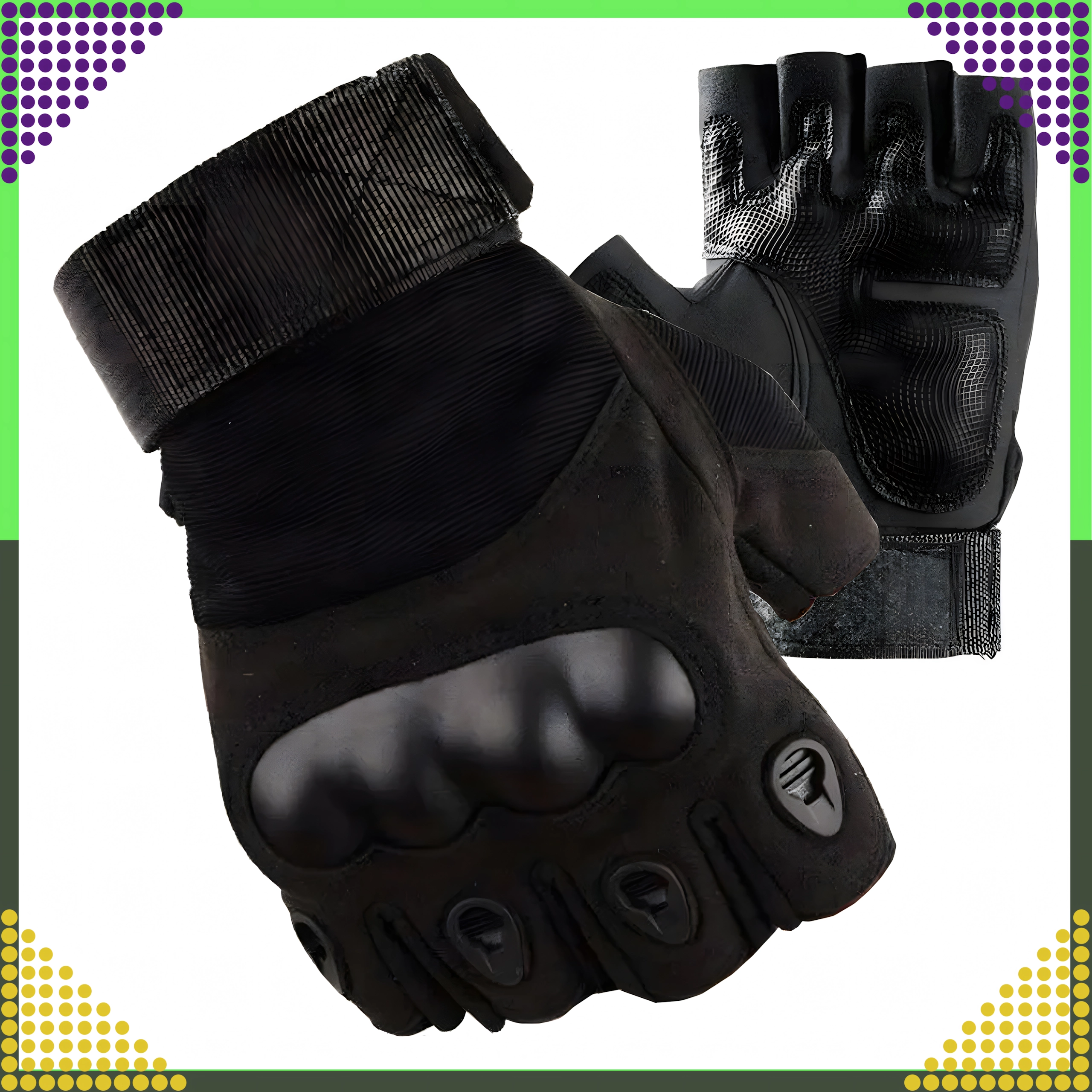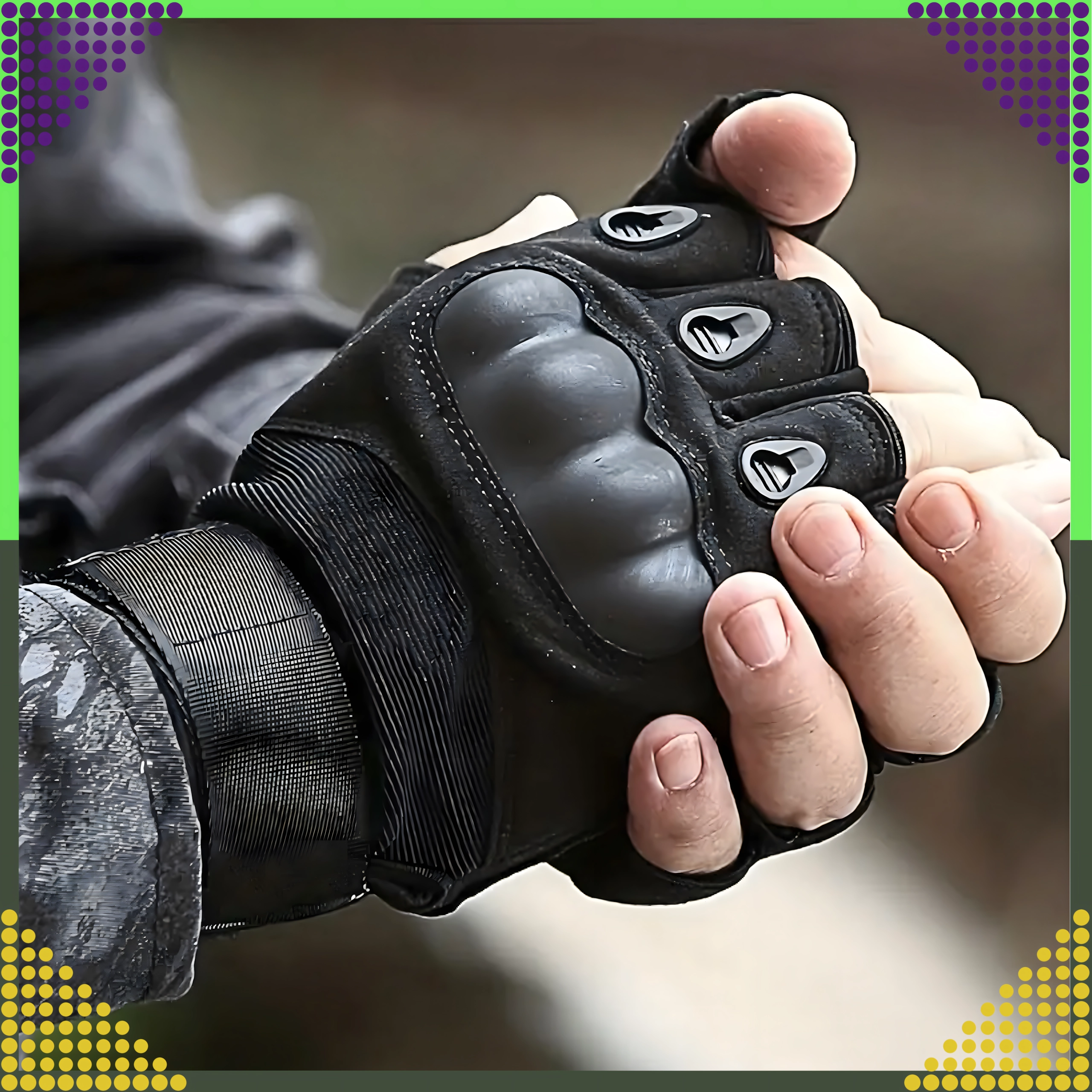 Тези тактически безпръстни ръкавици комбинират издръжливост и комфорт за продължително носене. Подсилената защита на кокалчетата и подплатяването омекотяват ударите, а текстурираната длан осигурява сигурен захват дори в предизвикателни условия. Отворените върхове на пръстите предоставят максимално усещане и точност при работа с инструменти или оръжие.