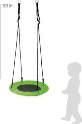 Зеленият хамак щъркелово гнездо SMALL FOOT превръща всяка градина, тераса или детска стая в оазис на спокойствие и забавление. Благодарение на мекия, удобен ръб и кръглата форма, осигурява безопасно и уютно място за четене, почивка и люлеене. Металните халки улесняват бързото окачване, а устойчивите материали гарантират дълъг живот.