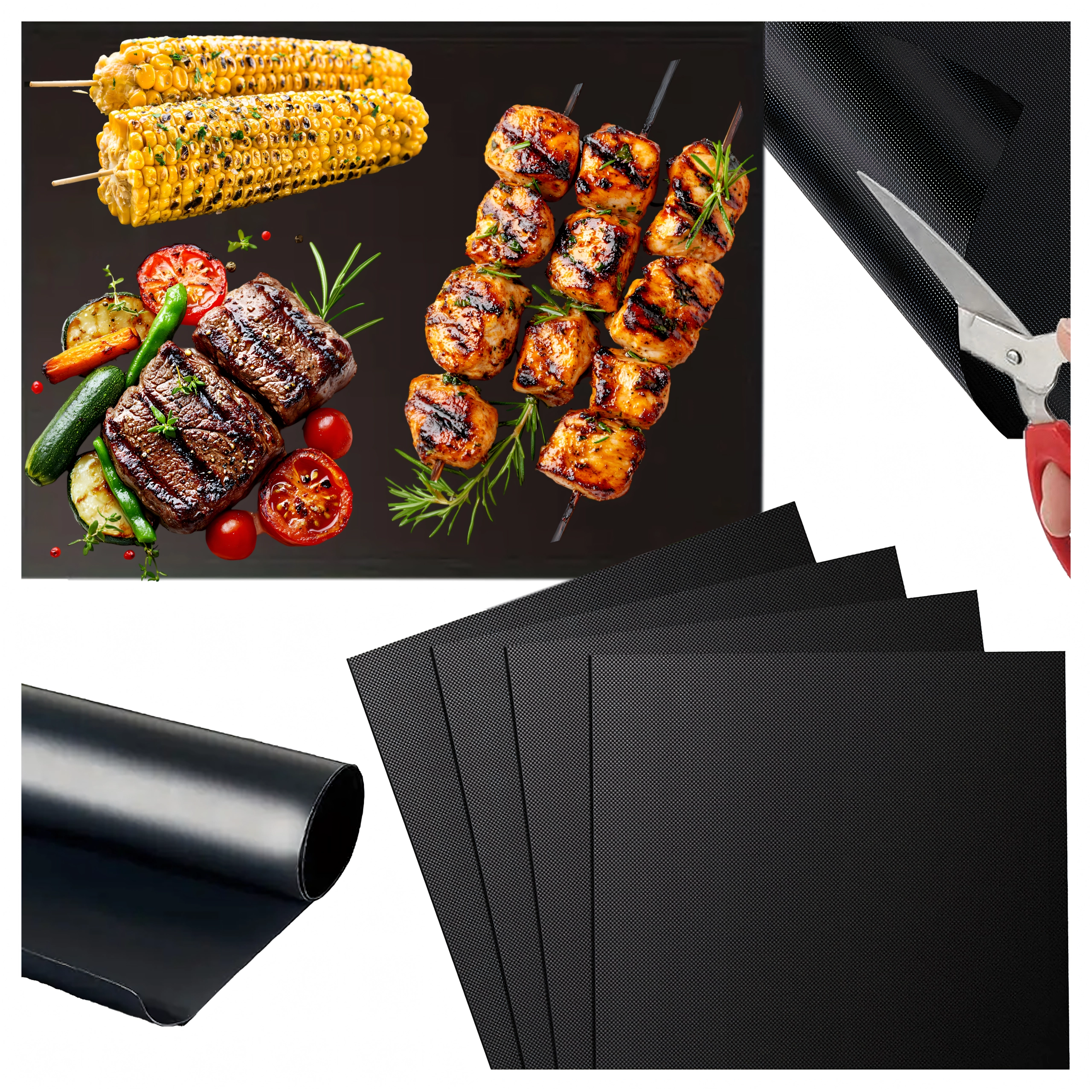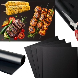 Практична тефлонова грил подложка за грил и фурна в комплект от 4 бр. улеснява приготвянето на храна без загаряне и без мазнина. Тя е нелепнеща, лесна за почистване, без PFOA и подходяща за многократна употреба до 260 °C. Идеална за месо, риба, зеленчуци и плодове и поддържа грила и фурната чисти.