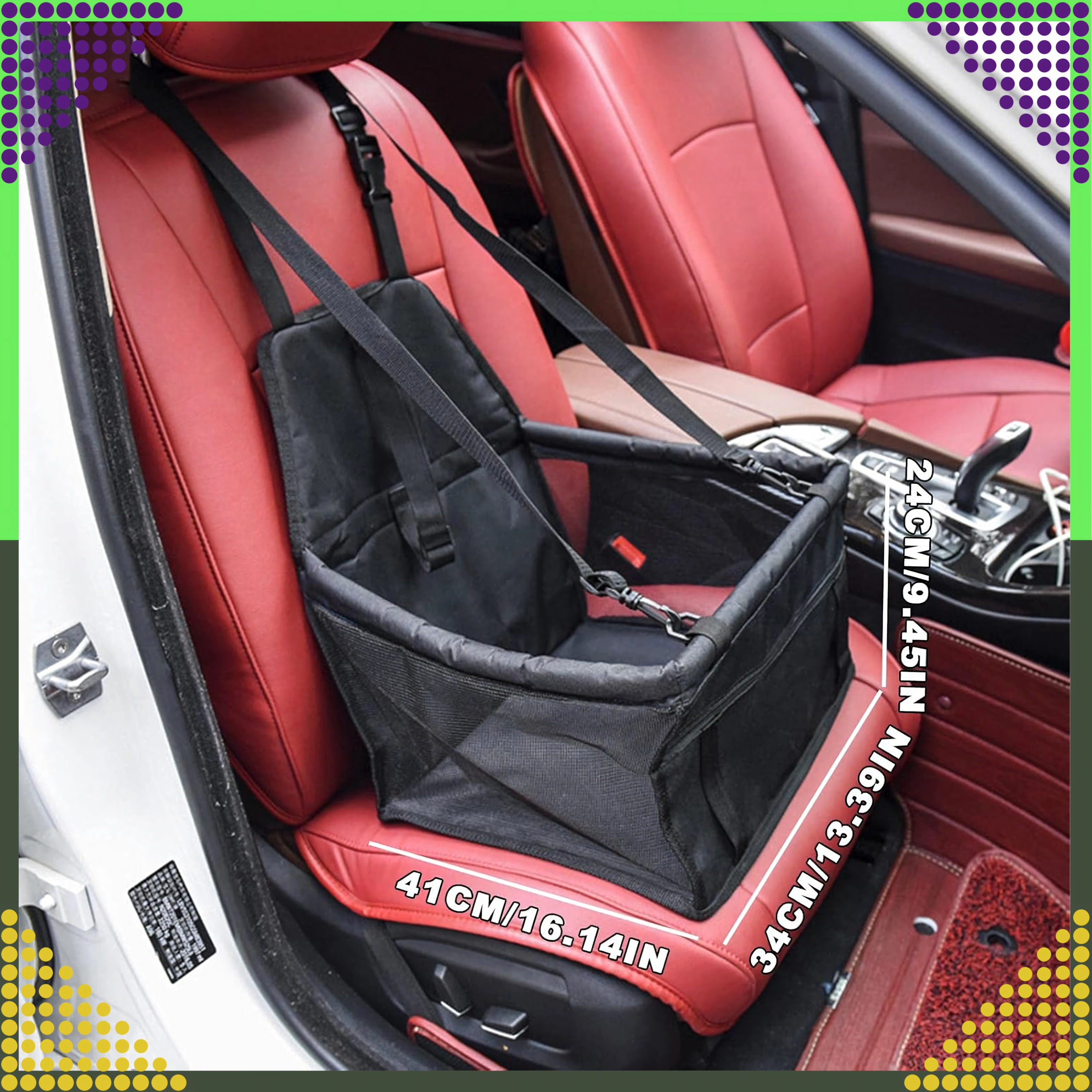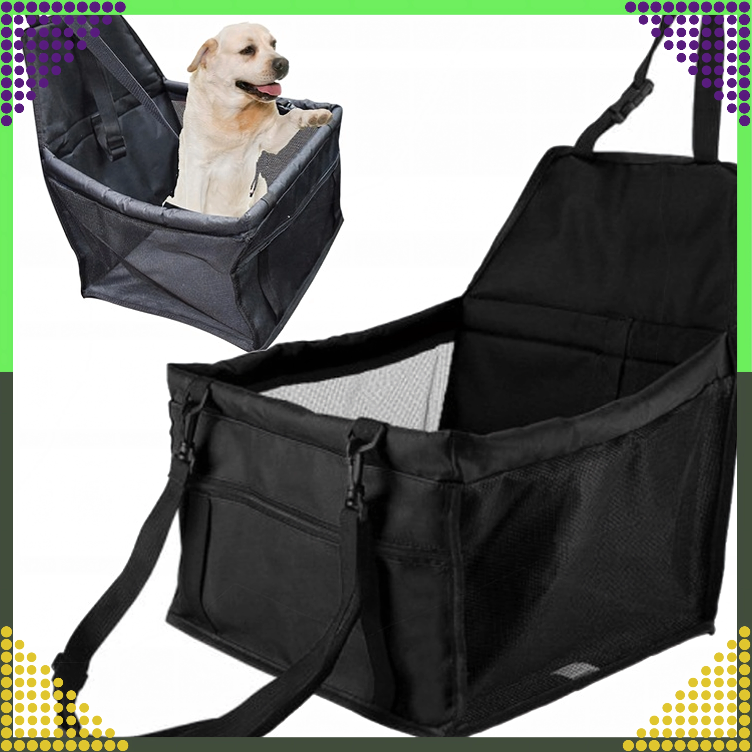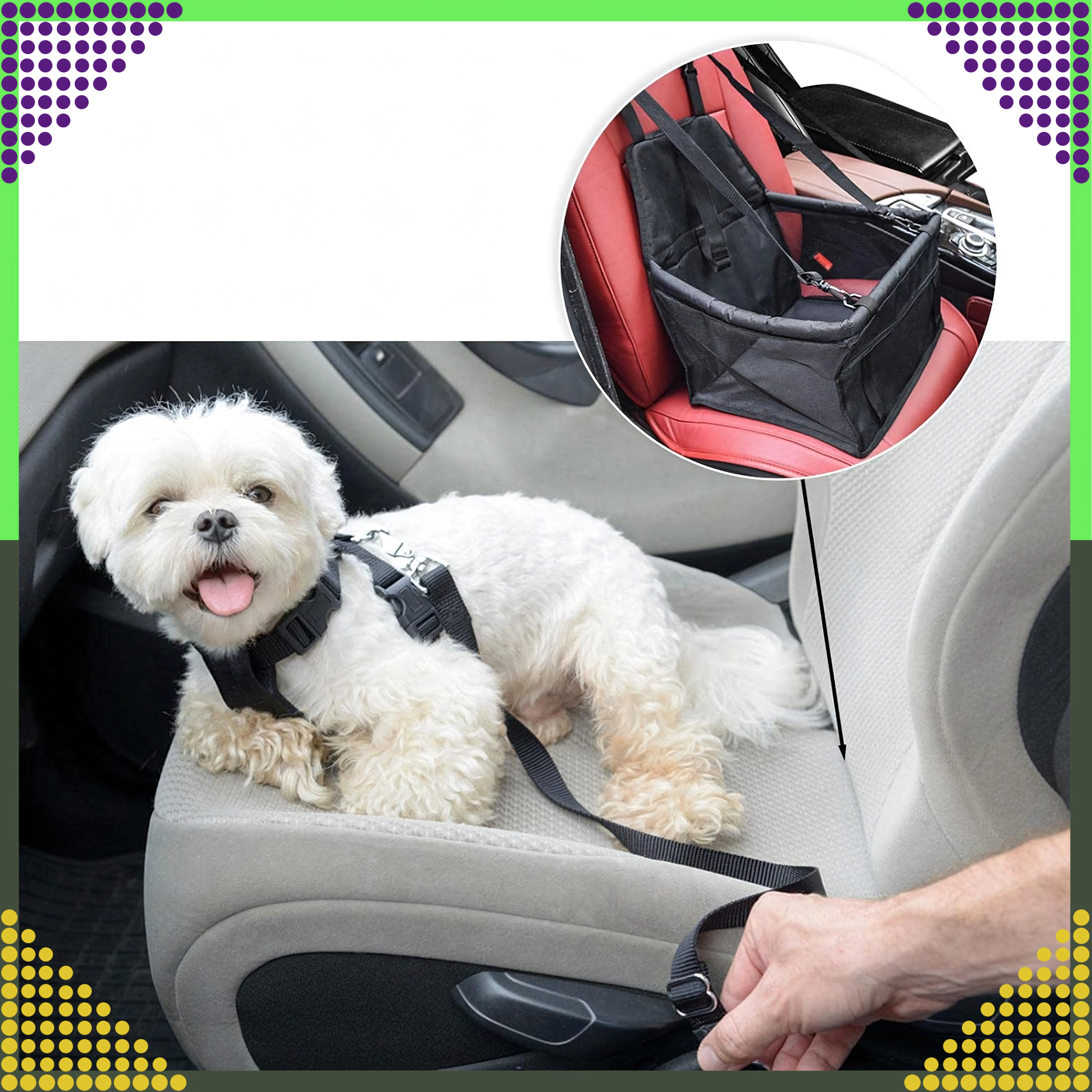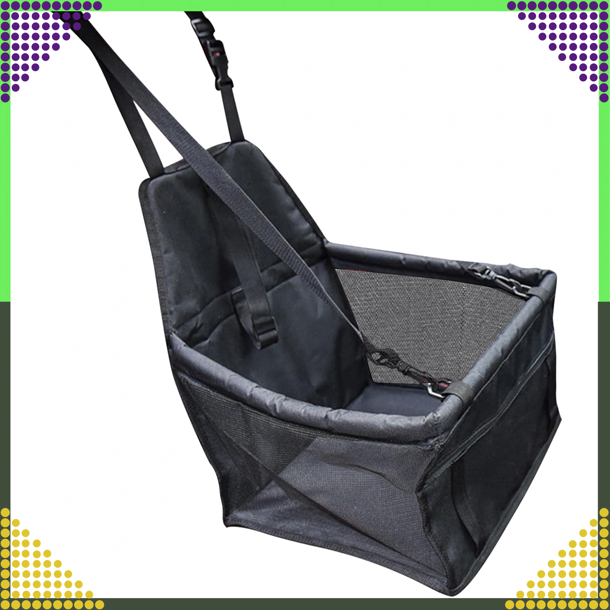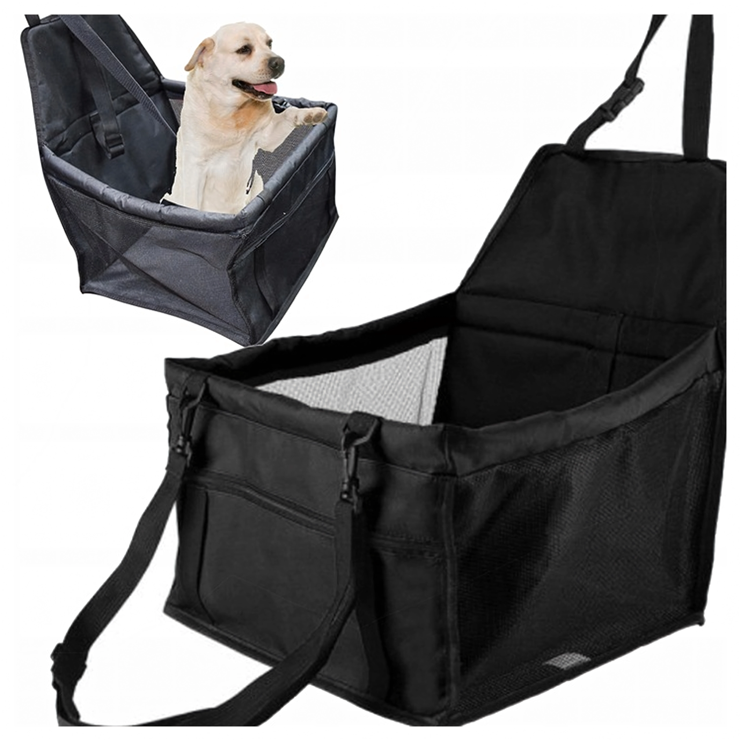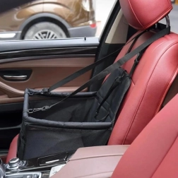 Практичната автоседалка за малки домашни любимци държи вашето куче или котка в безопасност и комфорт по време на пътуване. Благодарение на повдигнатата конструкция животното има по-добра видимост, докато регулируемите ремъци и вътрешната катарама го закрепват сигурно. Бърз монтаж, универсално закрепване към подглавник, дишащи мрежести страни и водоустойчив материал гарантират чисто и спокойно пътуване.