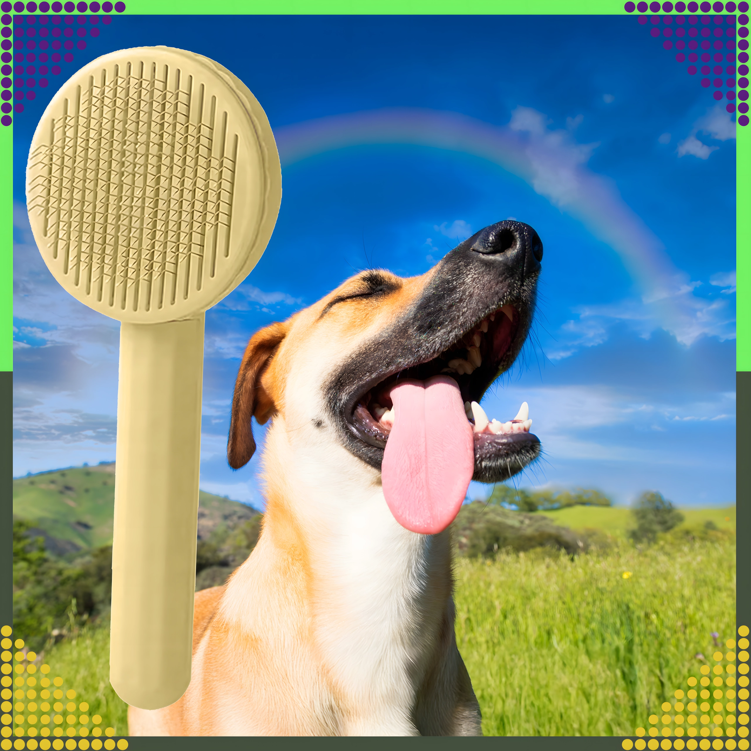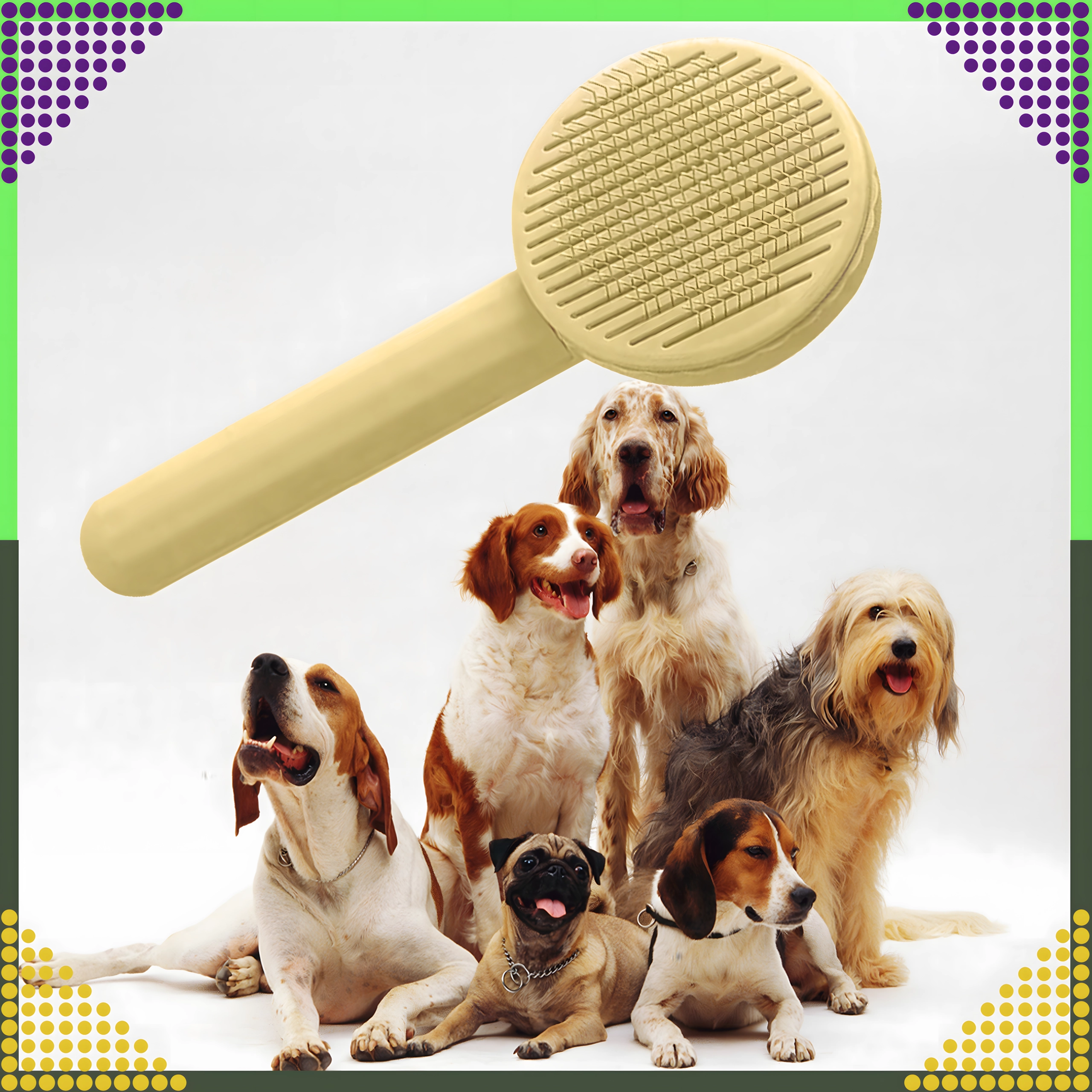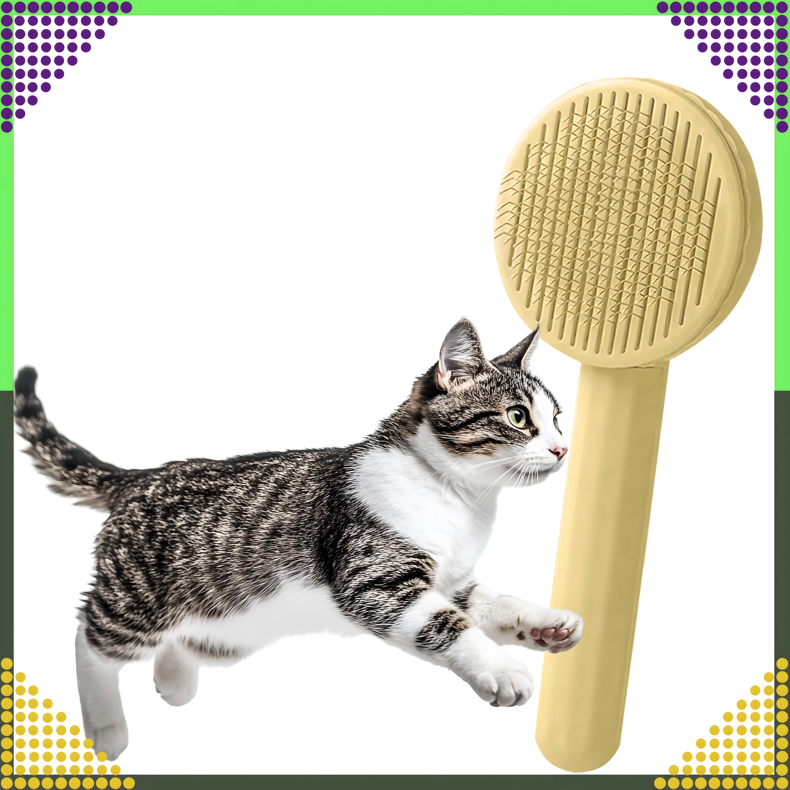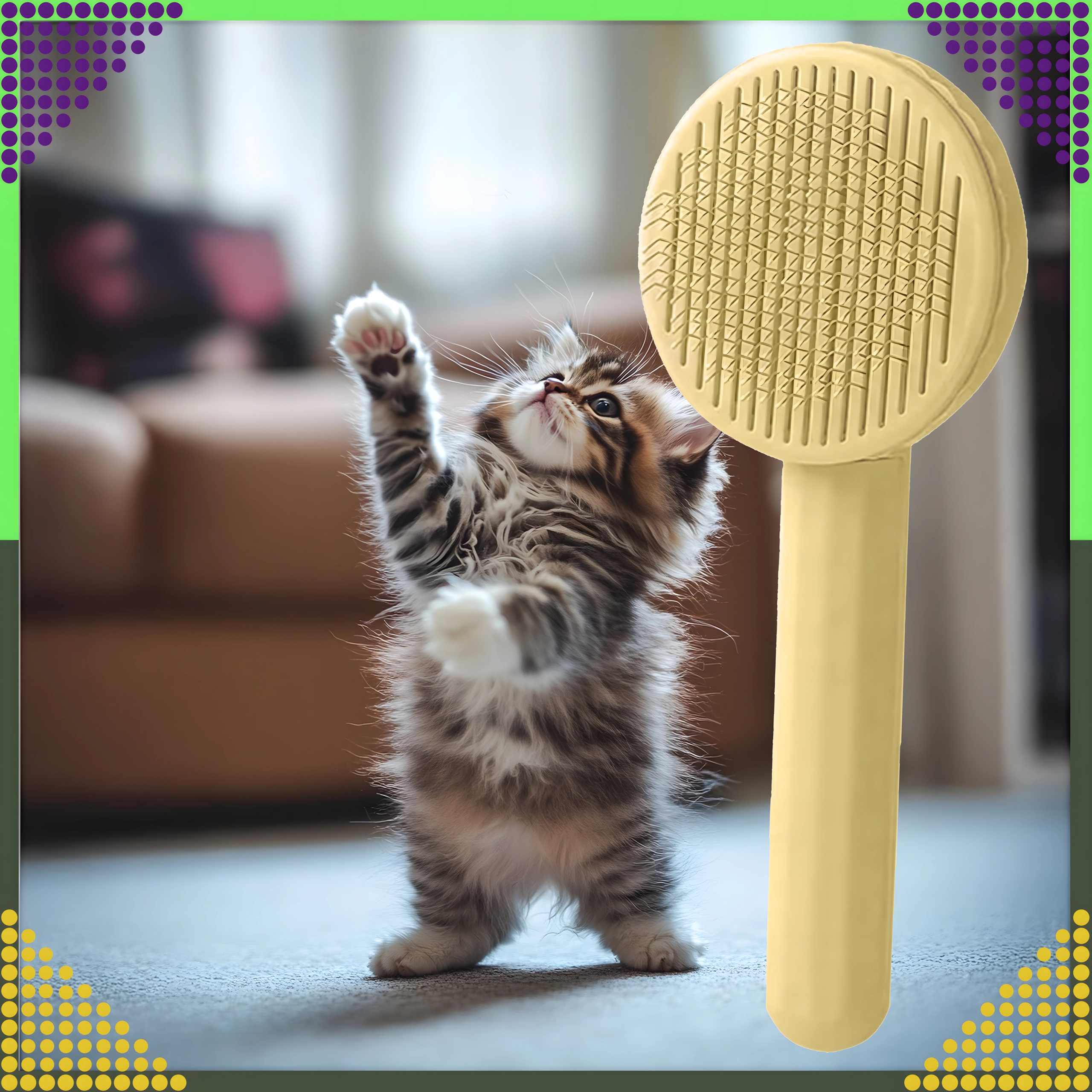 Самопочистващата се четка за козина улеснява ежедневната грижа за кучета и котки. Гъстите фини телчета със заоблени краища деликатно проникват в козината, премахват свободните косми и нежно масажират кожата, подпомагайки блясъка и здравето на козината. Ергономичната дръжка лежи удобно в ръката и позволява прецизен контрол без усилие.