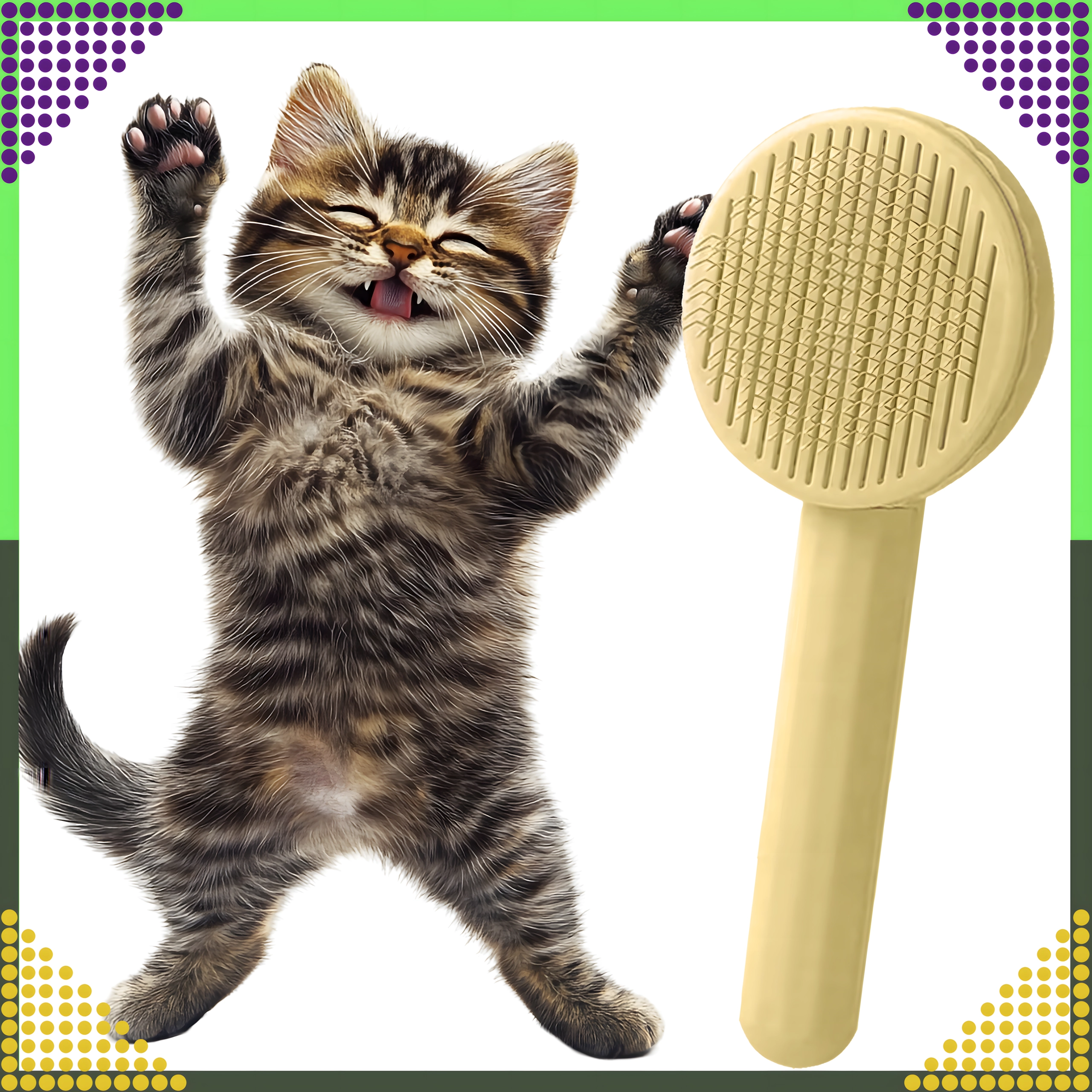 Вграденият бутон за бързо почистване за секунди освобождава уловените косми от косъмчетата – без дърпане и без разпиляване. Четката е подходяща за късокосмести и дългокосмести любимци, ефективно помага при разресване на сплъстени участъци и намалява количеството косми в дома.