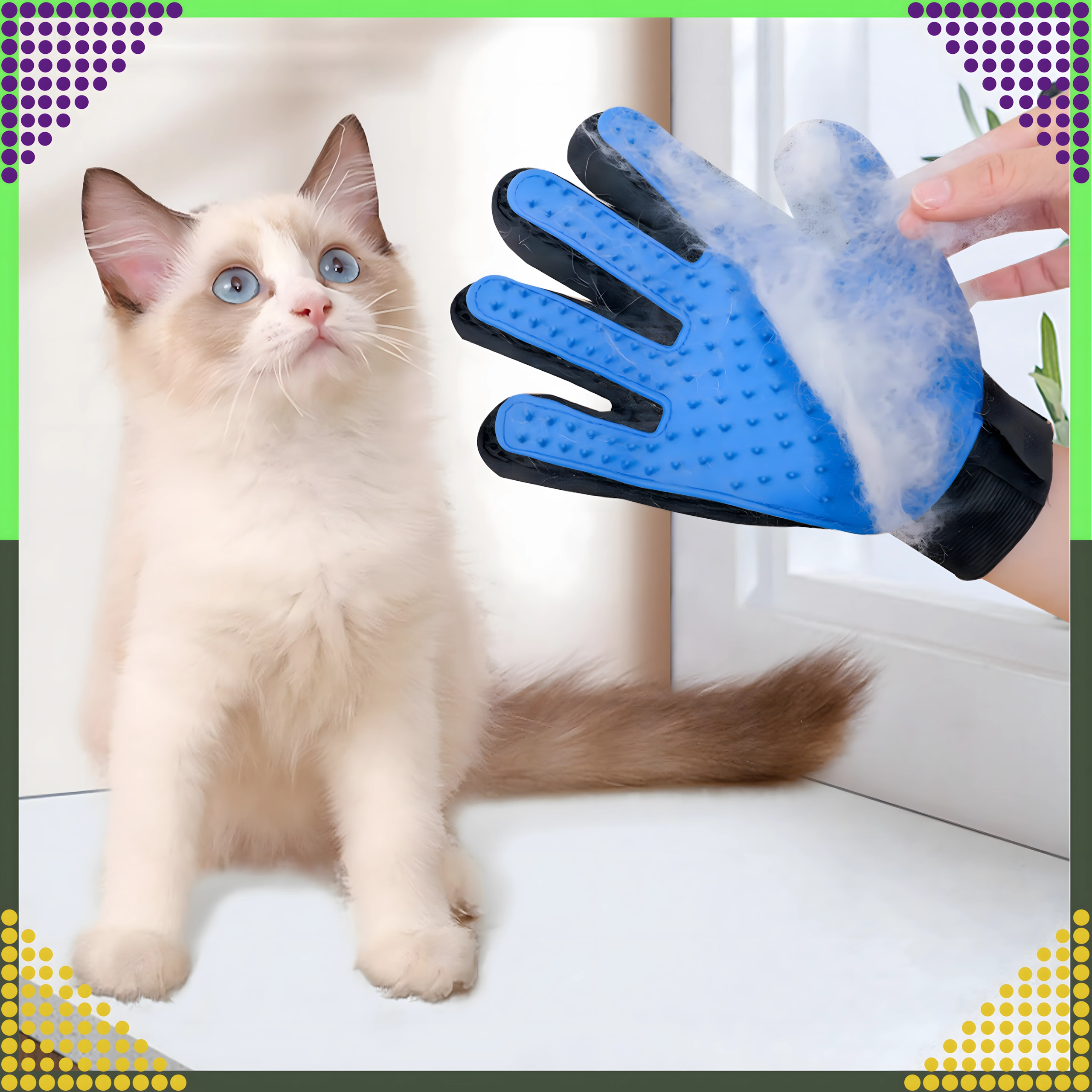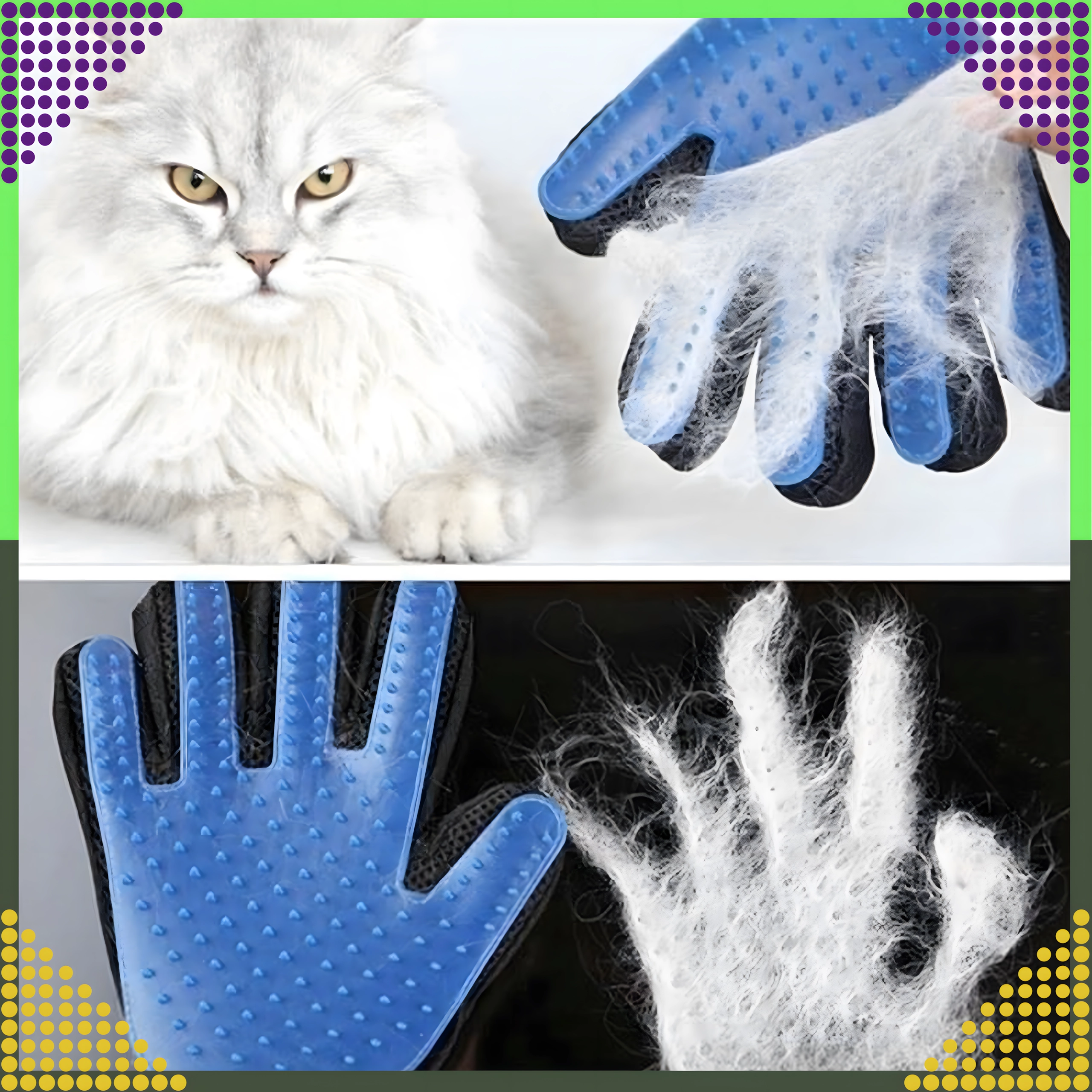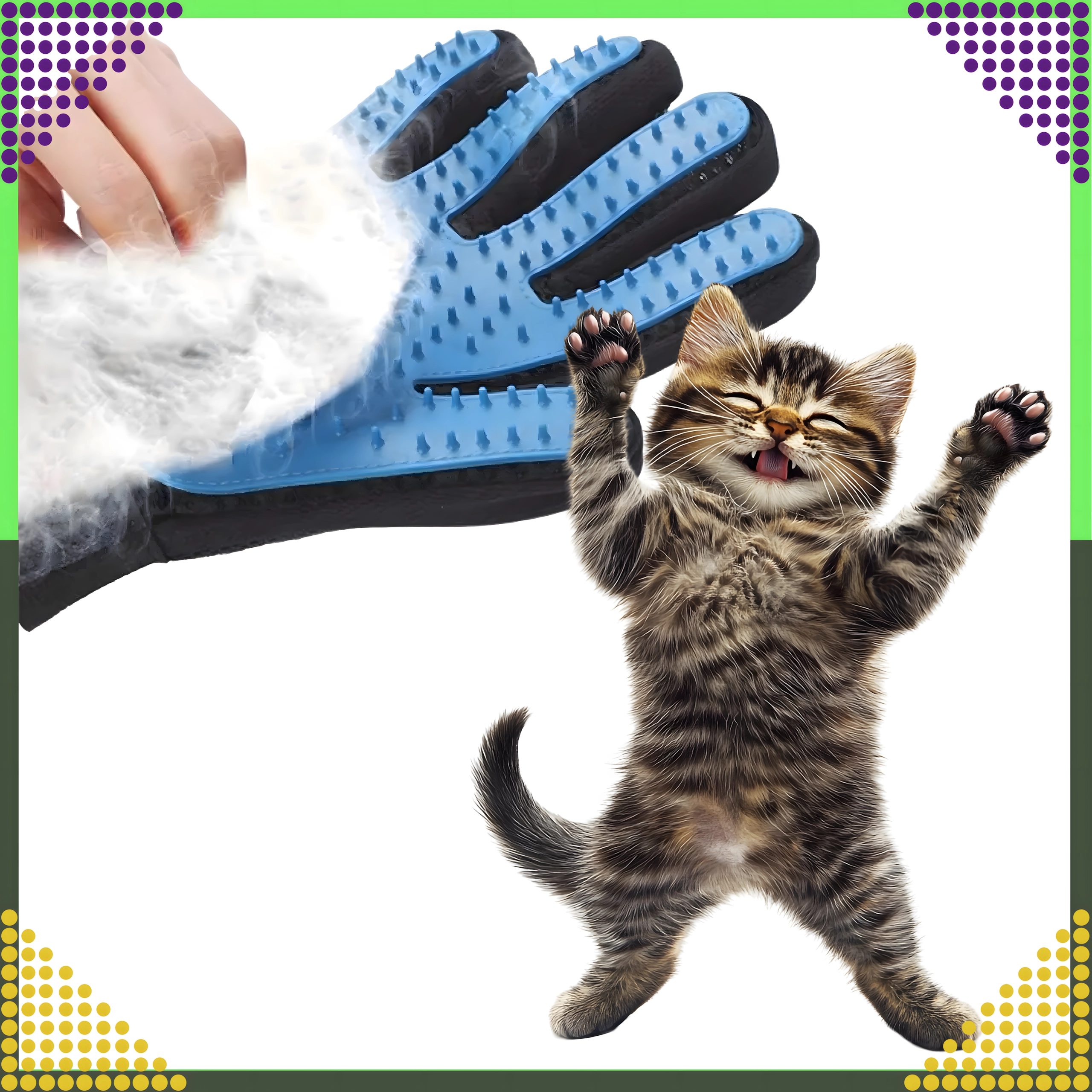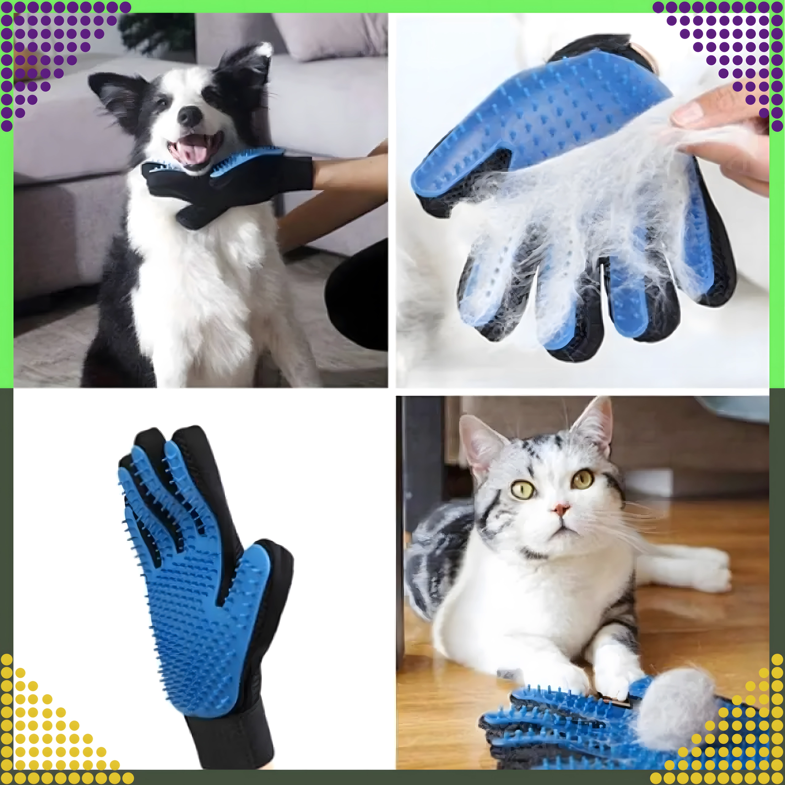 Четкащата ръкавица комбинира разресване, масаж и нежно почистване в една стъпка. Меките силиконови върхове събират падналата козина в компактни топчета, които лесно се отстраняват и изхвърлят. За разлика от обикновените четки, ръкавицата е приятна и щадяща, подходяща и за по-чувствителни любимци.