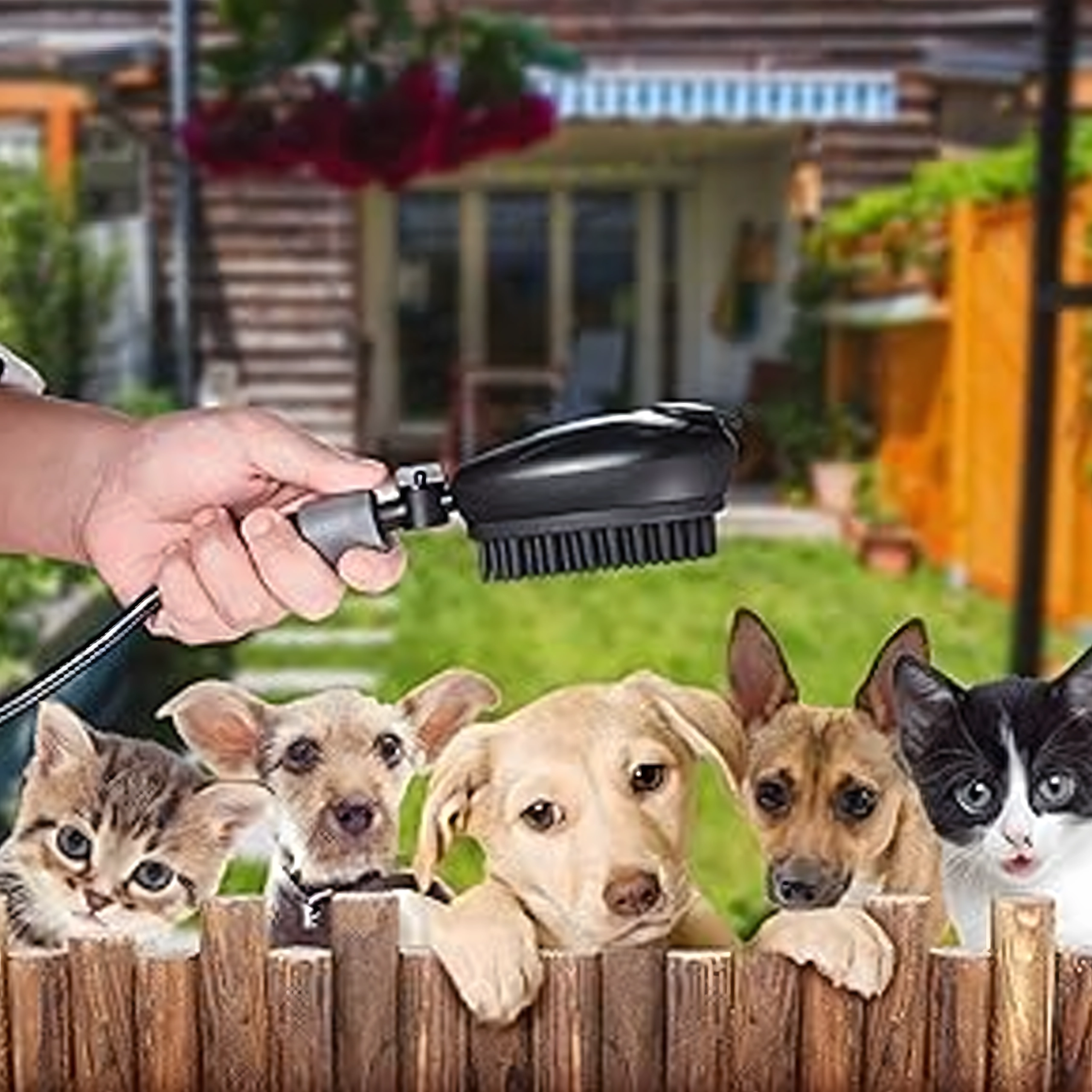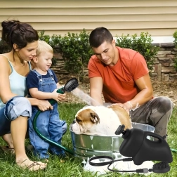 Вземете я навсякъде – в градината, на почивка или след разходка в парка. Компактното тяло с дръжка, здравият маркуч и практичната четка-глава я правят универсален мобилен душ за чистота и комфорт на вашия любимец.