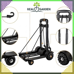 Облекчете ежедневната си работа с товари. Тази сгъваема транспортна количка комбинира ниско тегло, здрава конструкция от алуминий и пластмаса и телескопична дръжка, която се адаптира към вашата височина. Благодарение на компактните размери след употреба лесно я прибирате в шкаф, кола или на рафт.