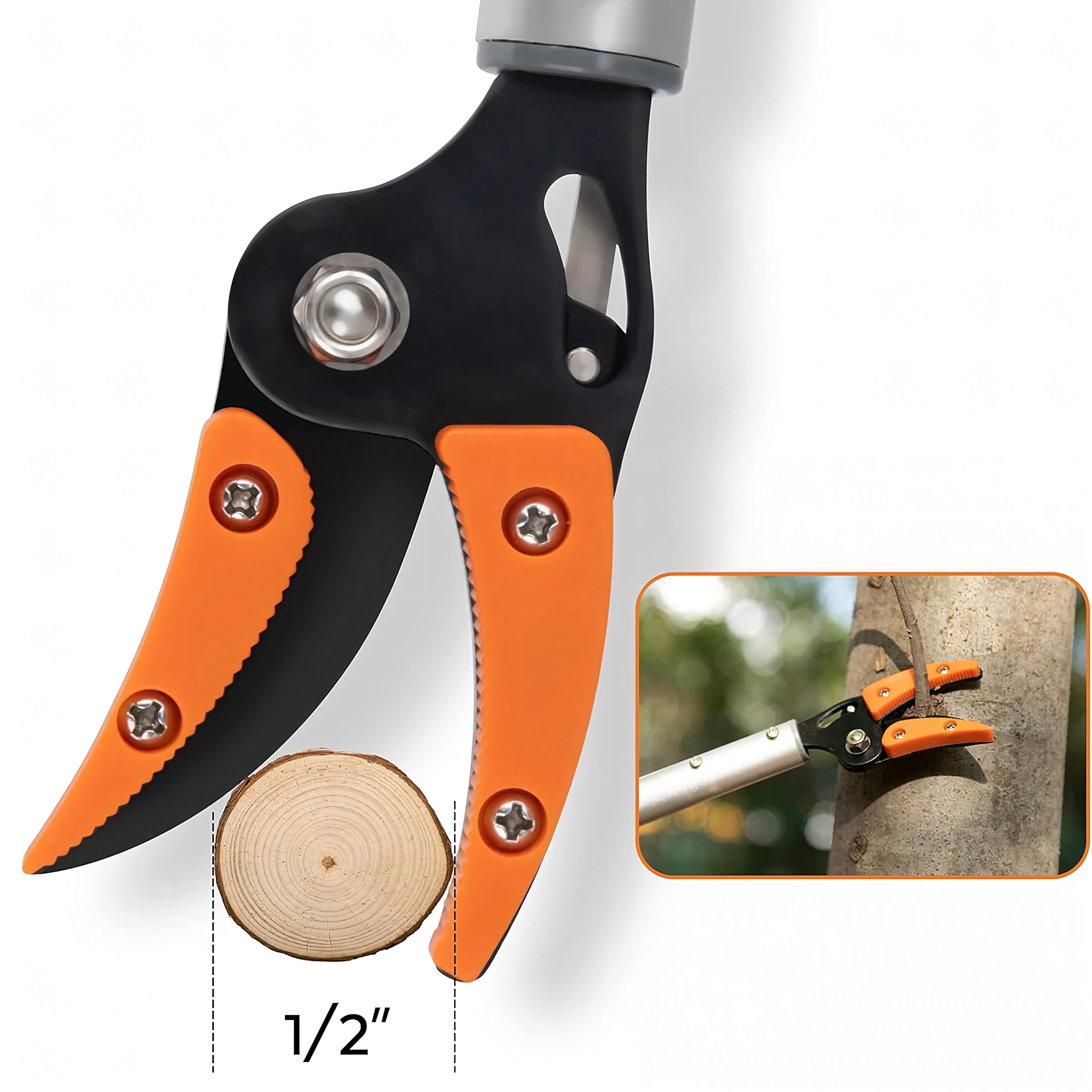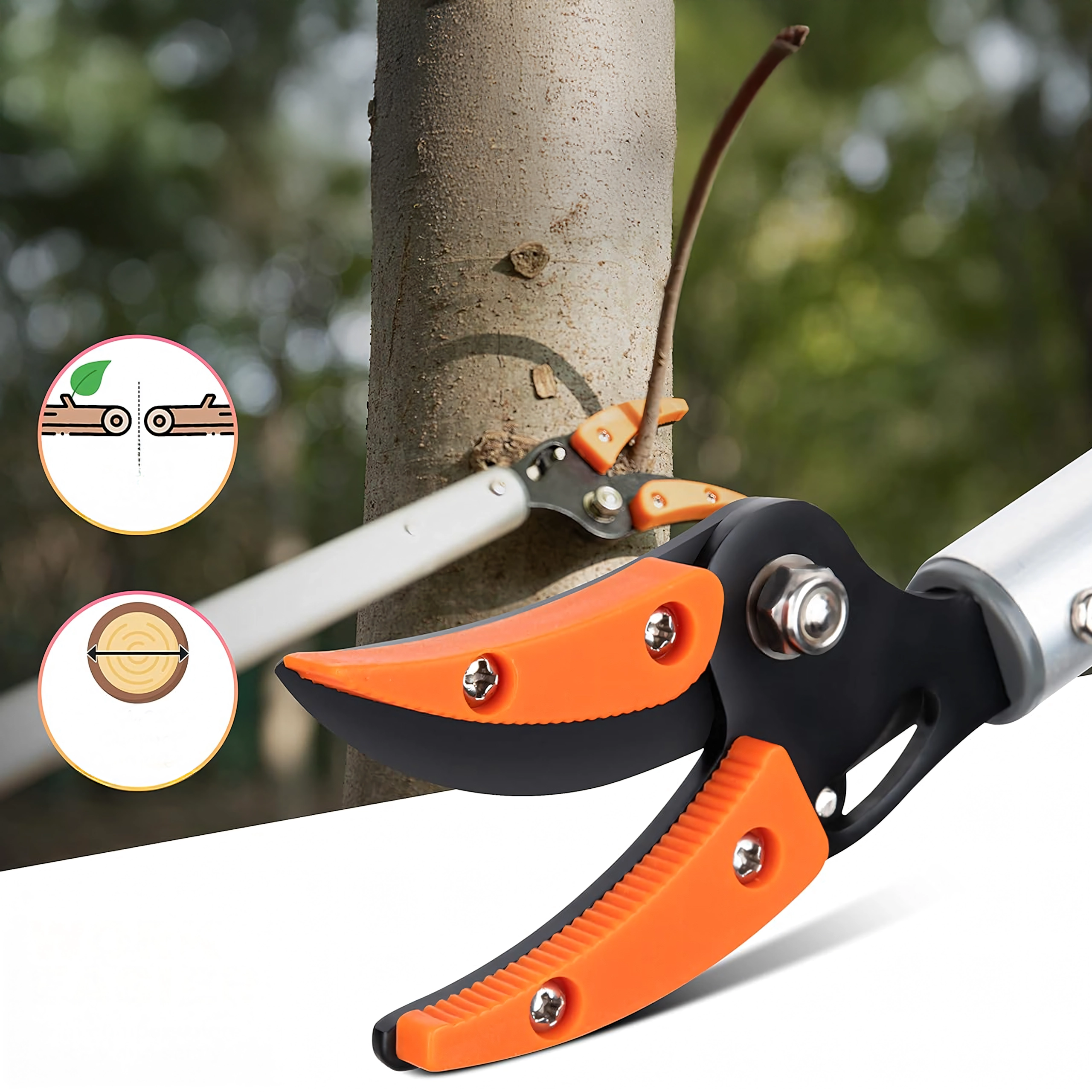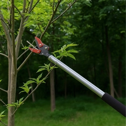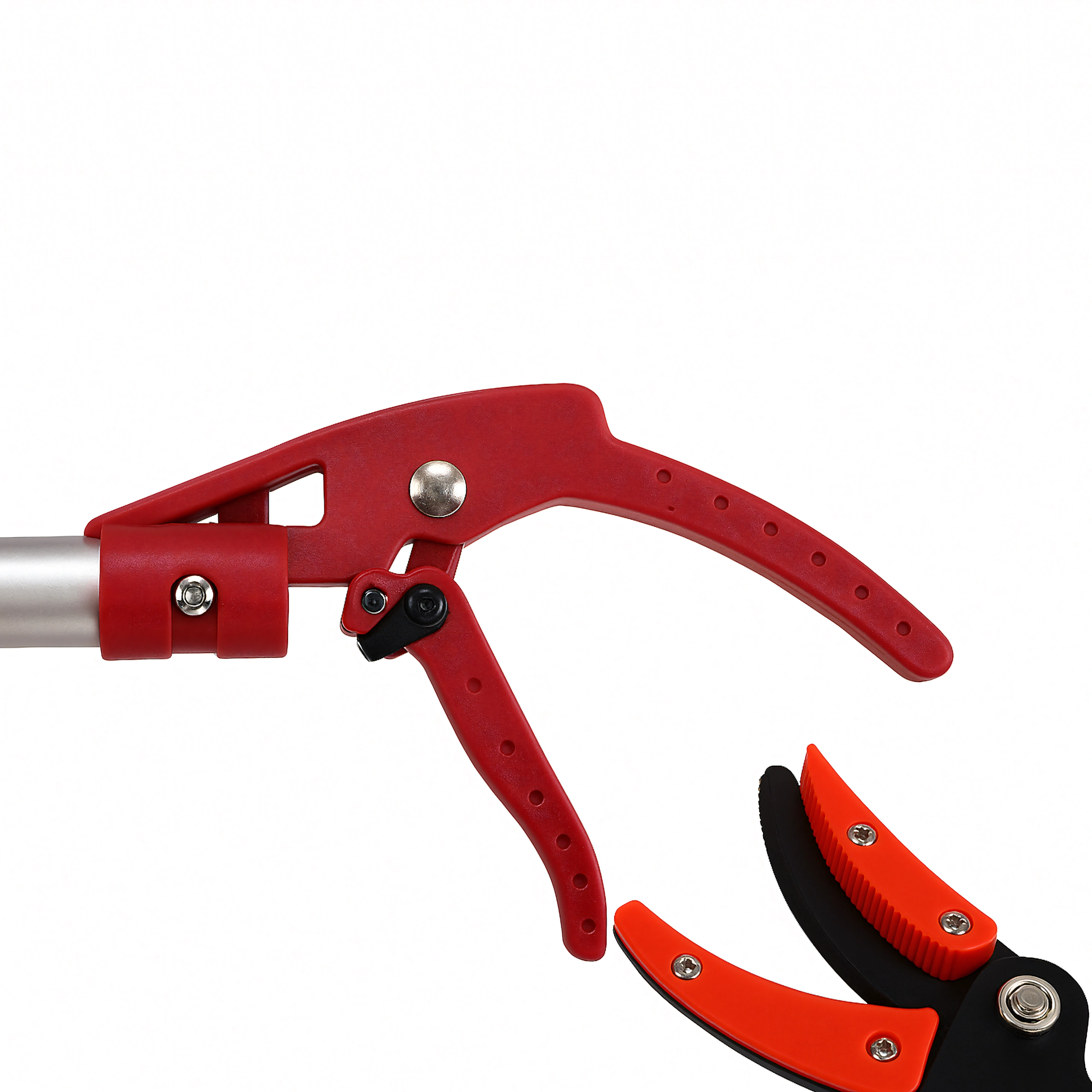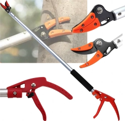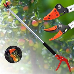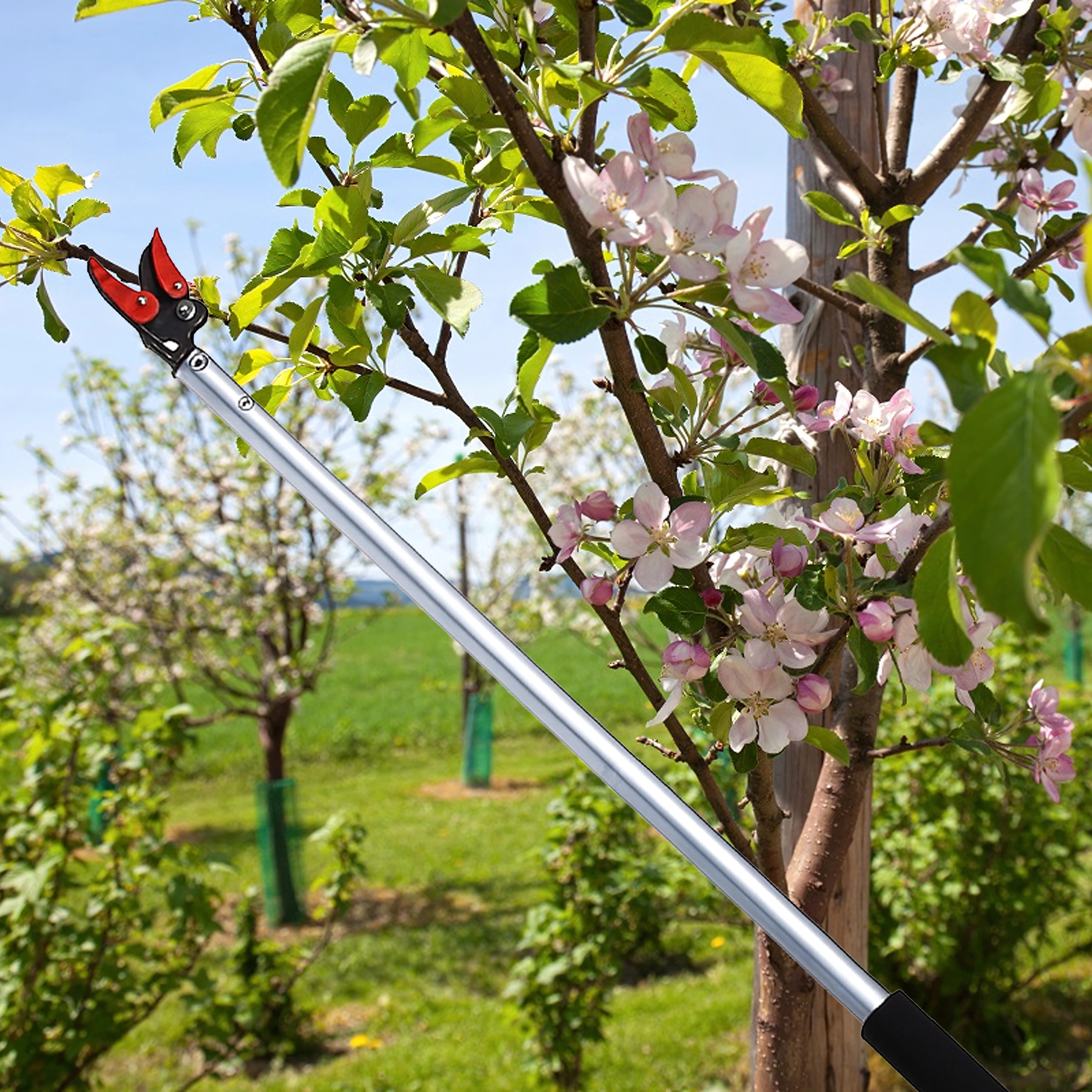 Този дълъг ножичен кастрач е проектиран за удобно подрязване на клони, оформяне на храсти и безопасно бране на плодове от по-високи места. Благодарение на лекото алуминиево тяло инструментът се маневрира лесно, а острото, издръжливо острие осигурява чист и прецизен срез.