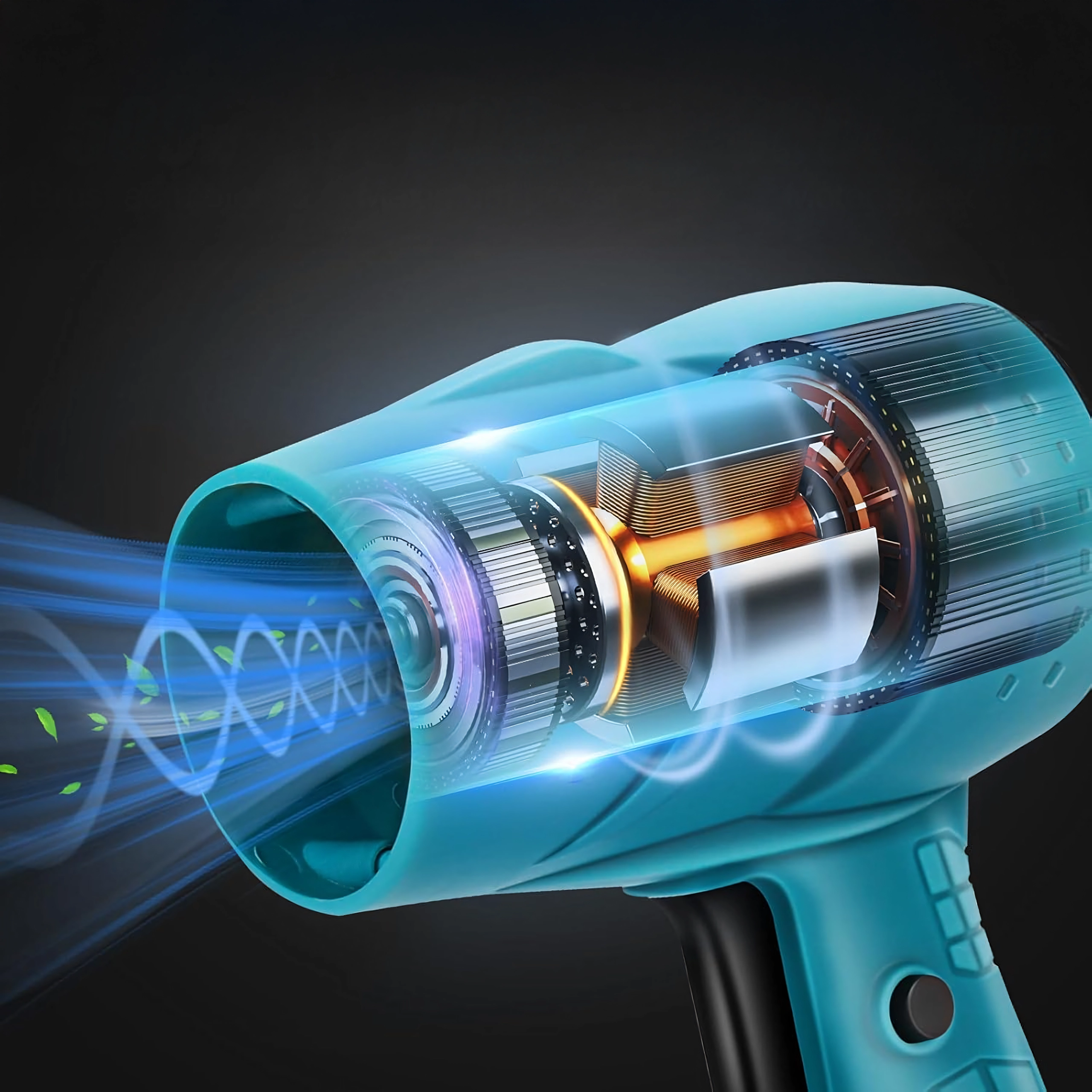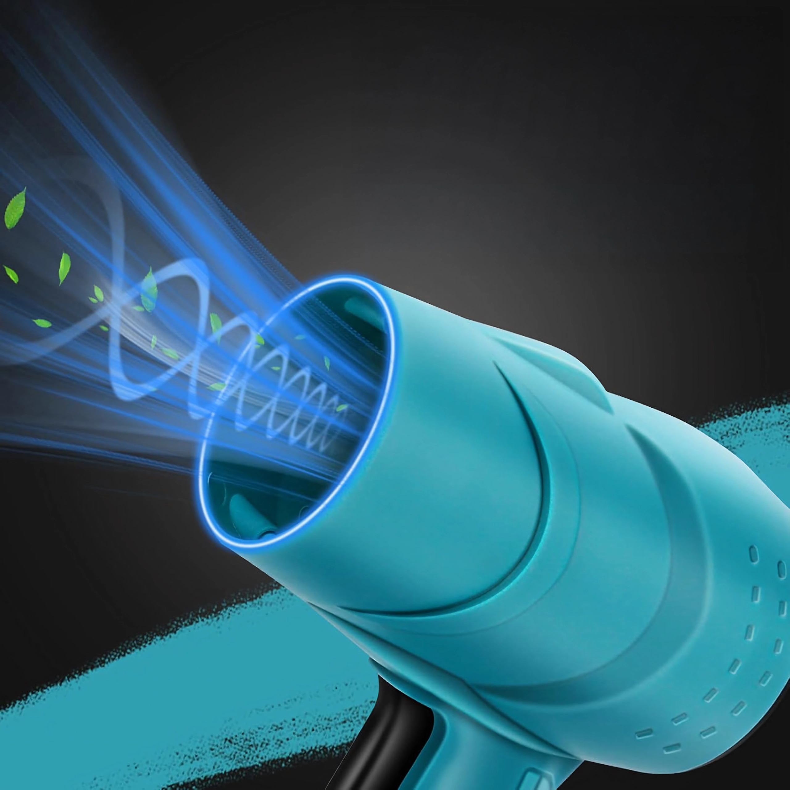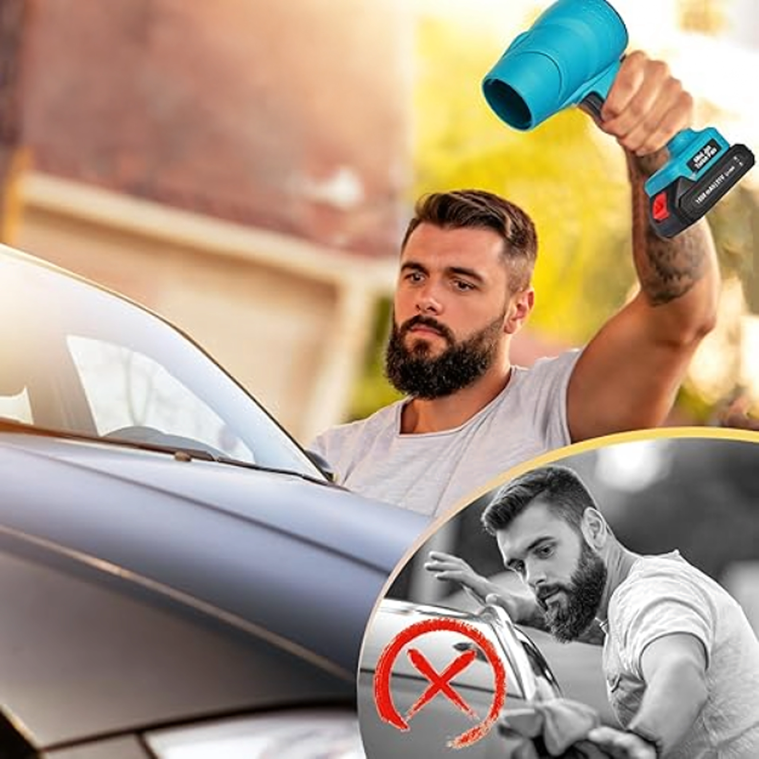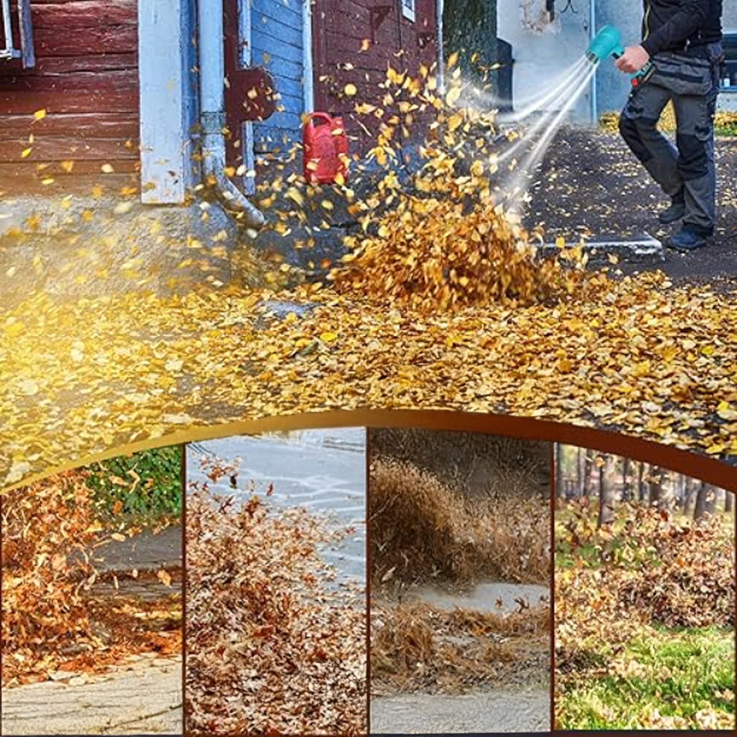 Този безжичен духал използва технология на турбовентилатор за моментална концентрация и висока скорост на въздушния поток. Лесно събира сухи листа от тротоари и алеи, издухва прах от ъгли и инструменти и бързо помага при сушене на повърхности, например след измиване на автомобил.