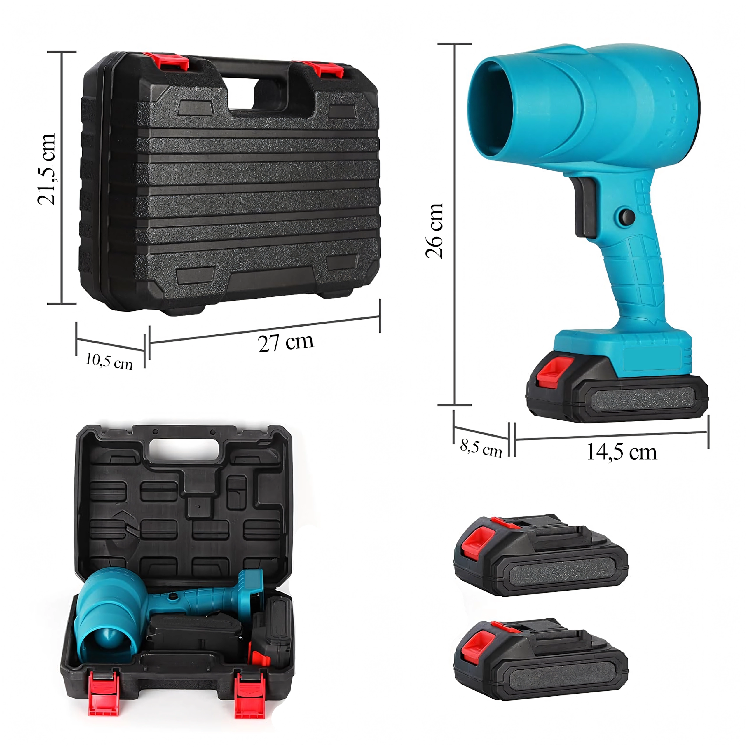 Лек и ергономичен акумулаторен духал 400 W с две батерии 21 V осигурява силна въздушна струя за бързо отстраняване на листа, прах, полени и пресен сняг. Идеалният помощник за дом, градина, гараж и работилница, както и за път – универсален инструмент за почистване и сушене без кабели.