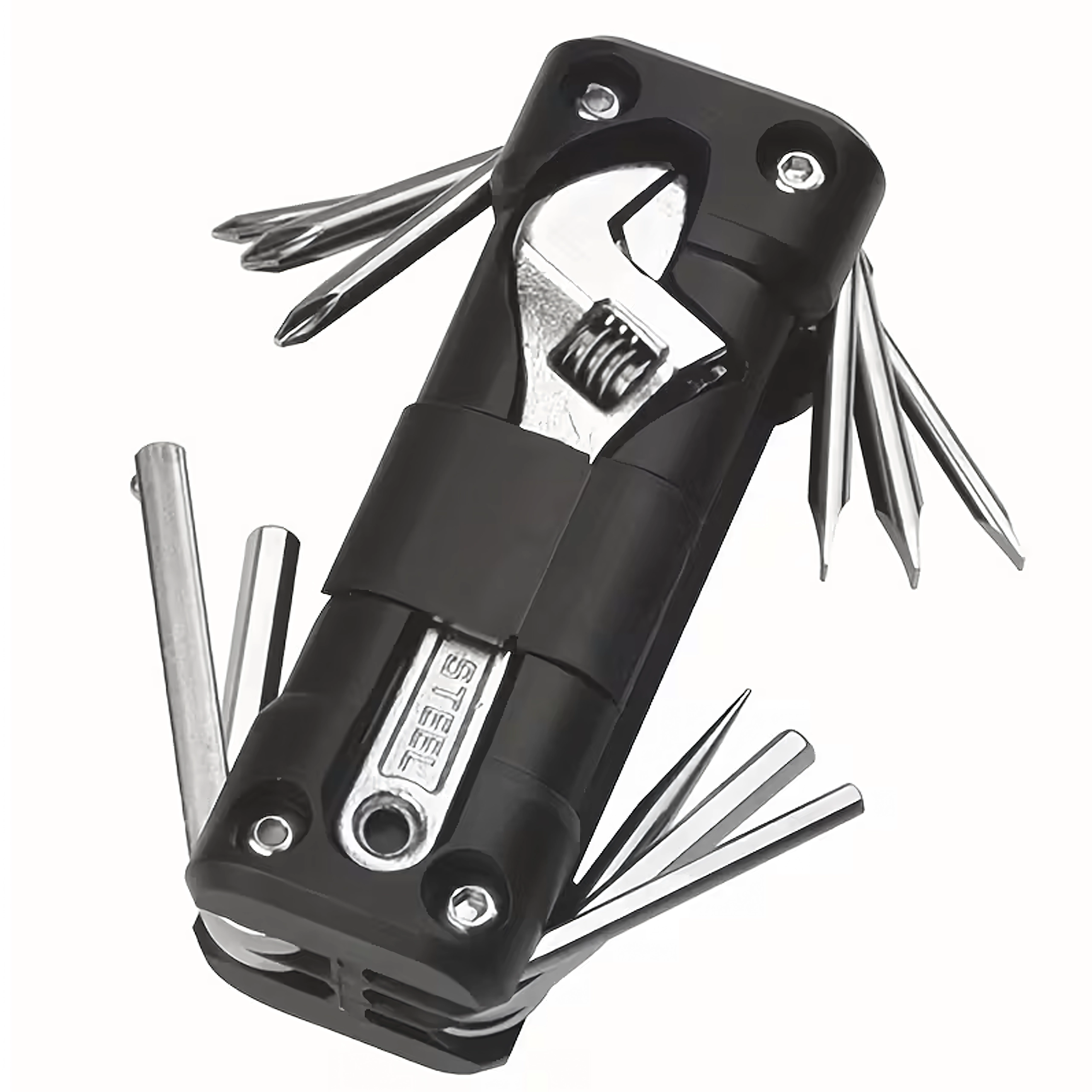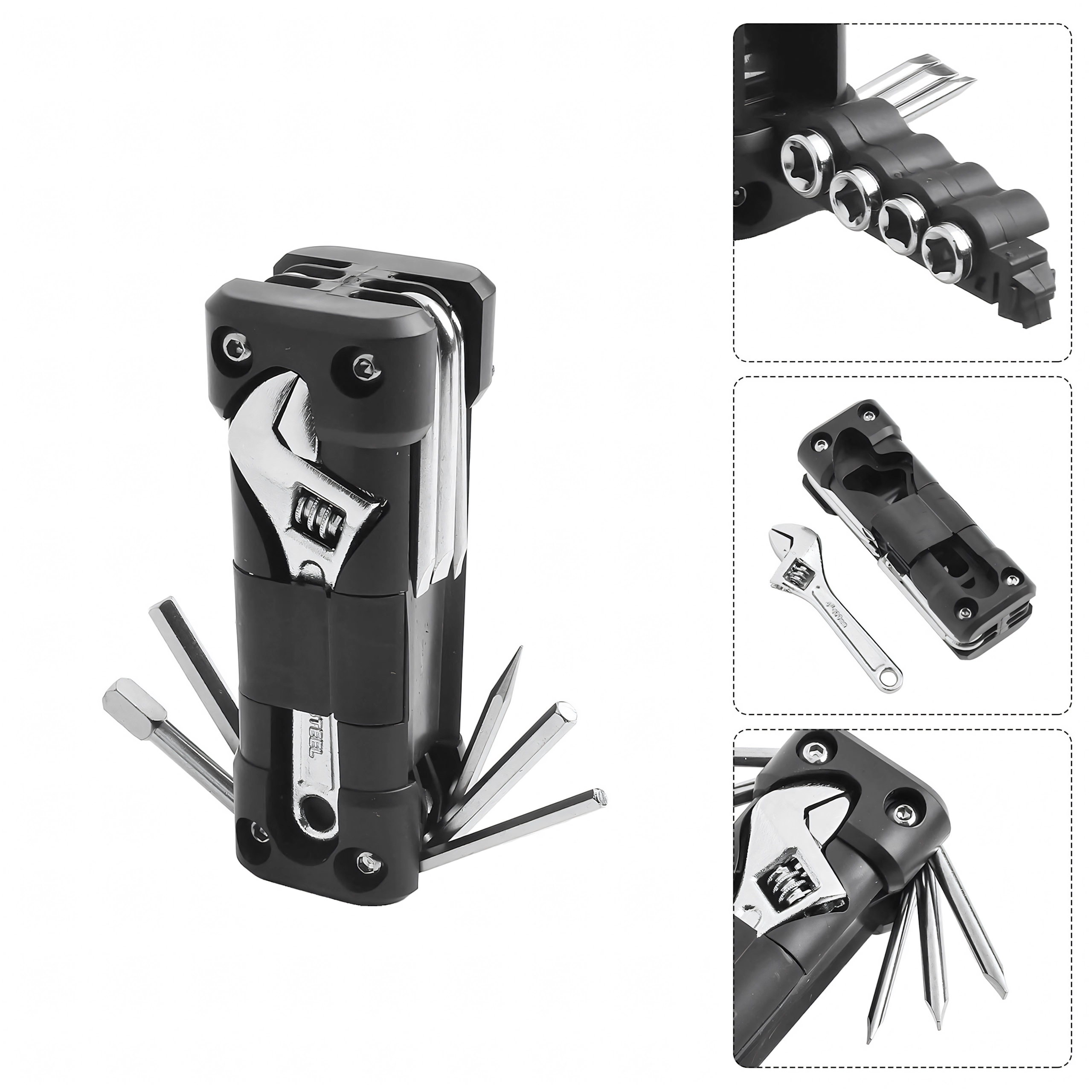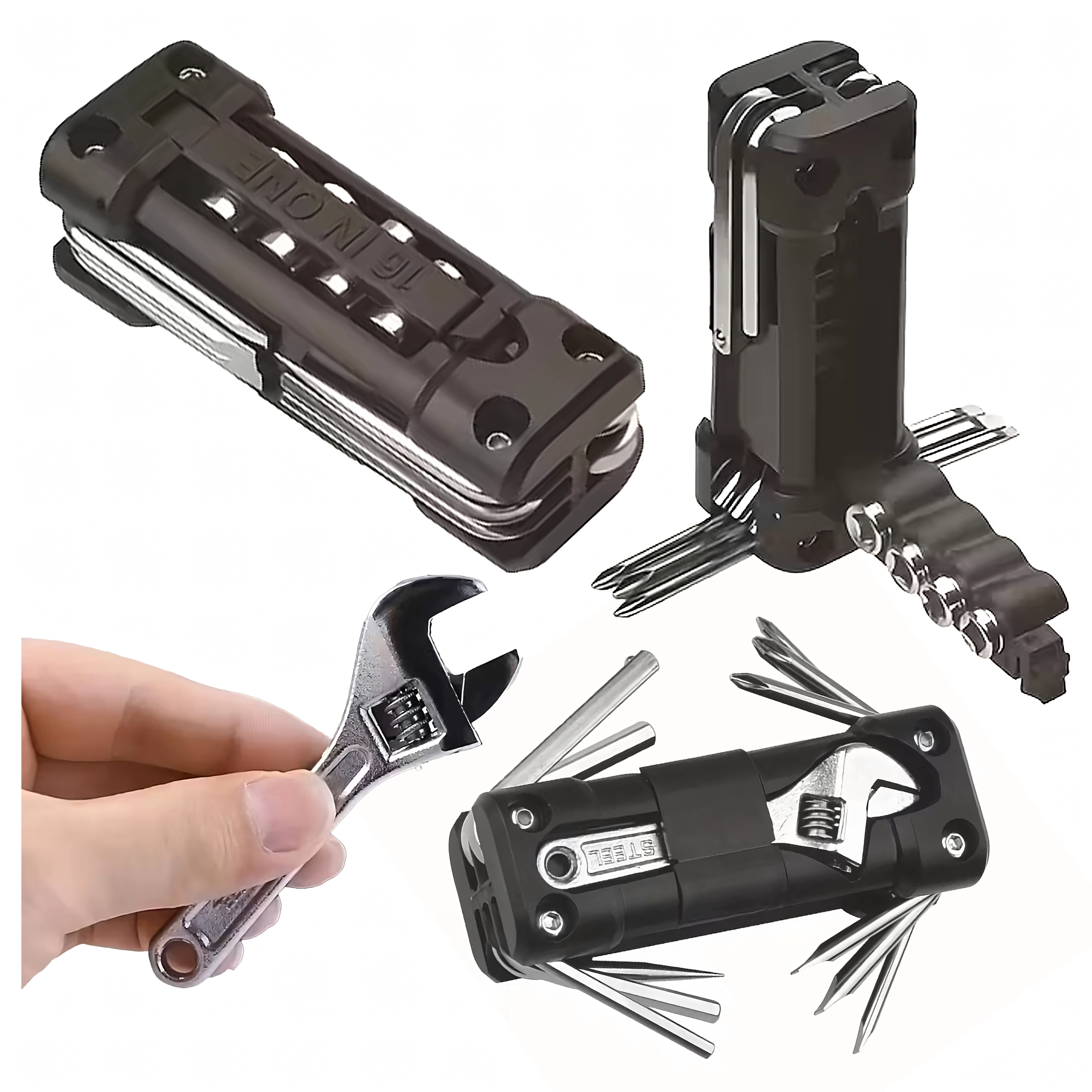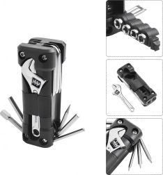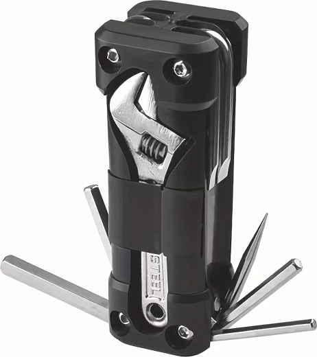 Универсалният мултитул 13в1 предлага всичко необходимо за стягане на болтове и бързи настройки по време на път или у дома. Здравите метални инструменти и ергономичното тяло осигуряват сигурен захват и дълъг живот. Благодарение на сгъваемата конструкция се побира удобно в джоб, подседална чантичка или отделение в колата.