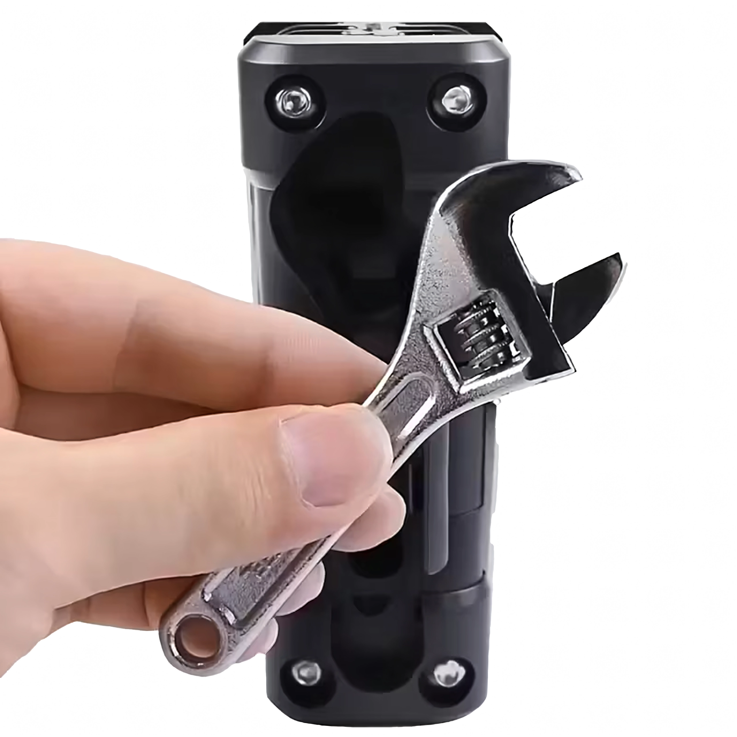 Интегрираният регулируем ключ помага при различни размери гайки и болтове без необходимост от допълнителни инструменти.