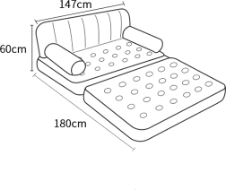 Открийте гъвкаво решение за сядане и спане в едно. Това надуваемо разтегателно 5-в-1 канапе за миг се превръща от удобен диван в просторно легло за двама. Меката, камерна повърхност намалява точките на натиск и осигурява опора при седене и сън.