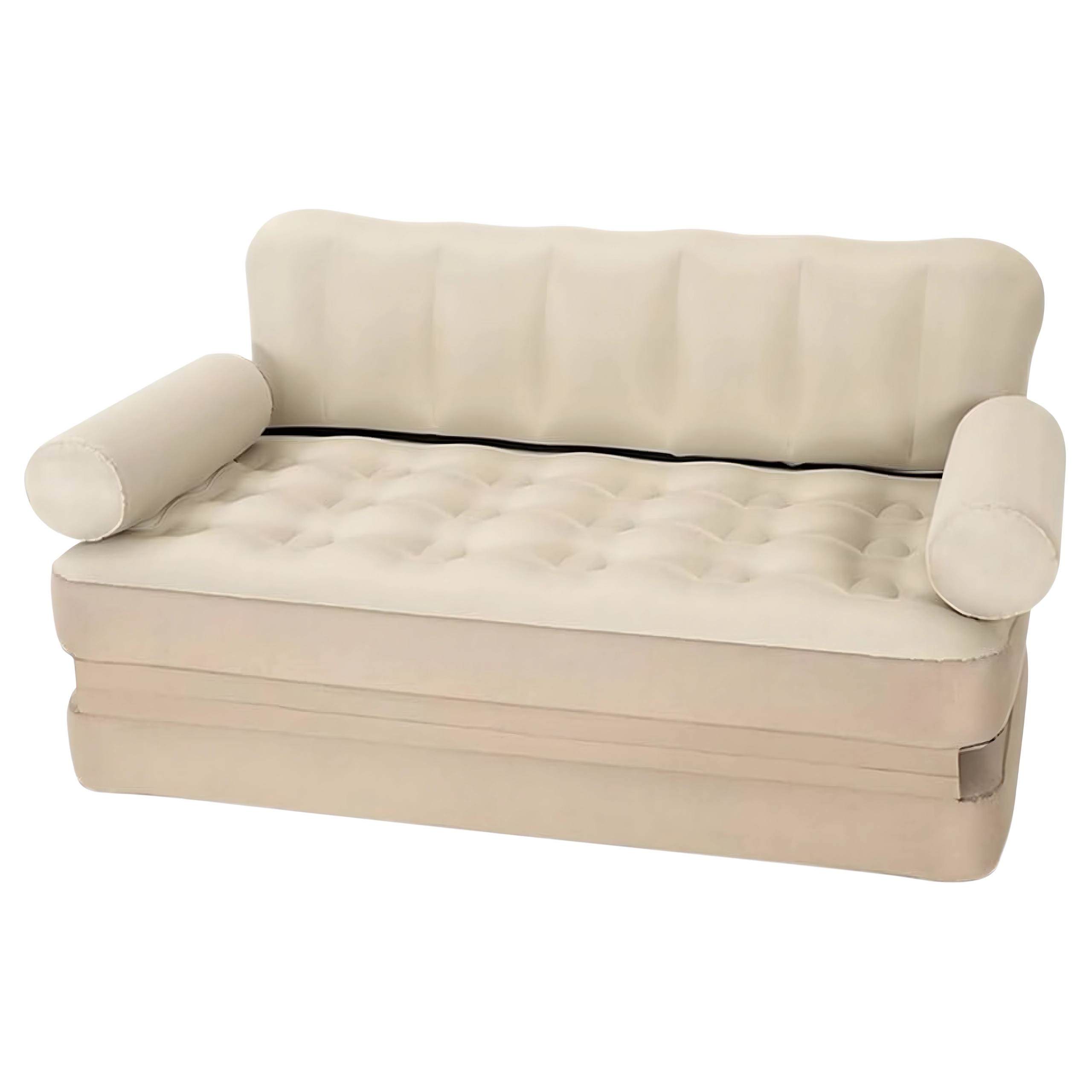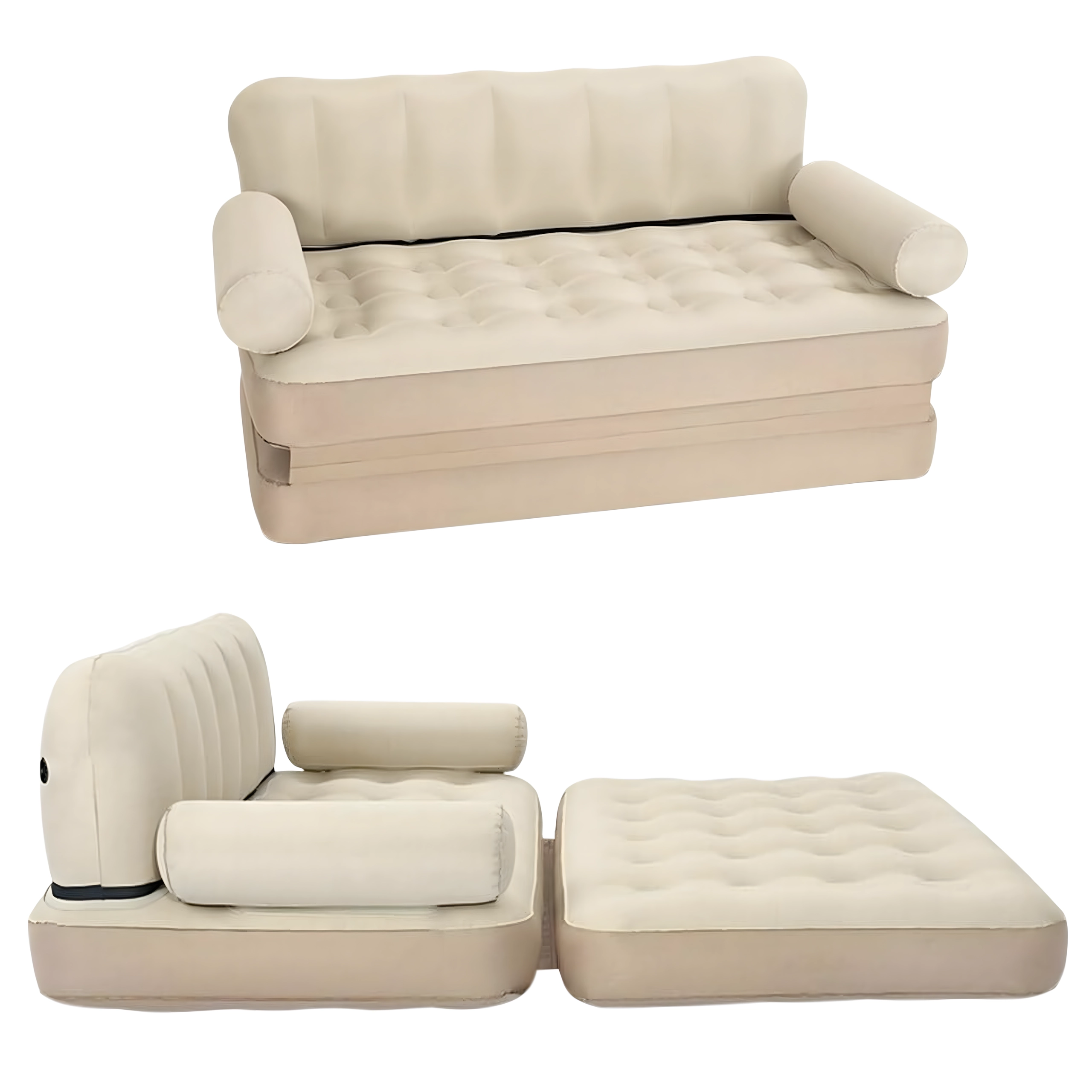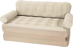 Универсалното надуваемо 5-в-1 канапе е практична мебел за ежедневен комфорт у дома и в движение. Служи като диван, шезлонг, матрак и легло за двама. Благодарение на издръжливото PVC е леко, лесно за пренасяне и в елегантния бежов цвят пасва на всеки интериор и за градината.