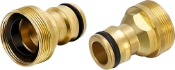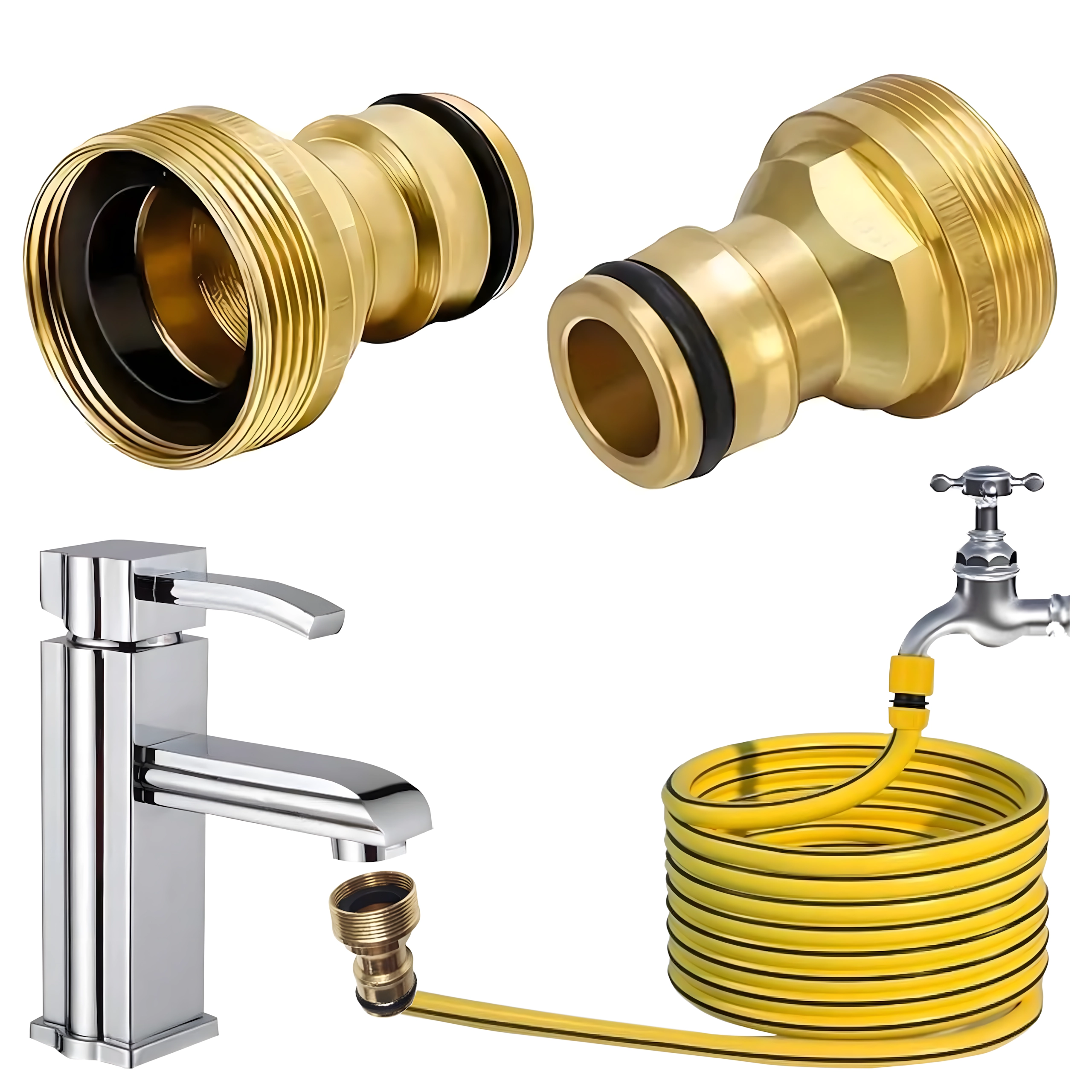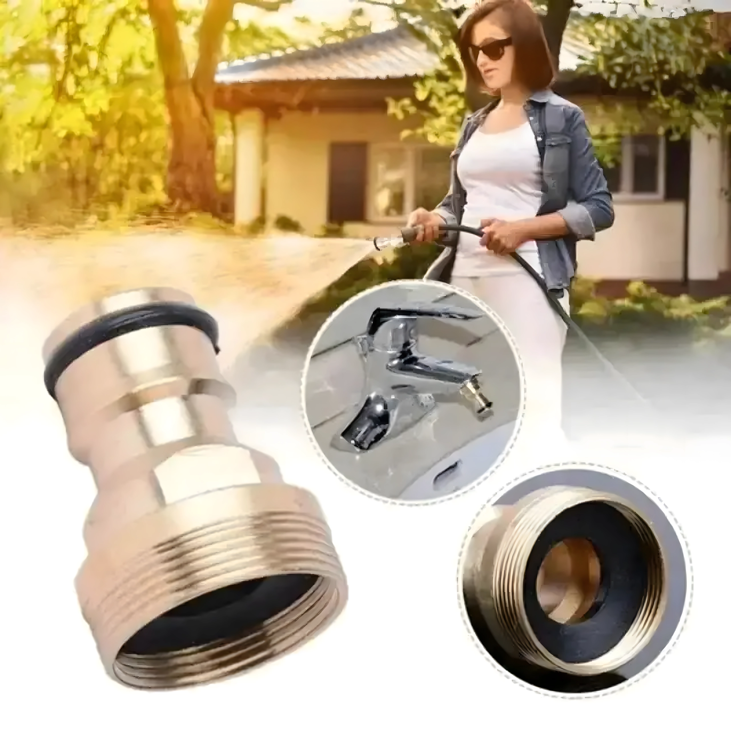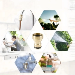 Универсалният месингов адаптер G3/4 позволява бързо свързване на градински маркуч към чешма без инструменти. Благодарение на здравата месингова конструкция и сменяемия уплътняващ О-пръстен осигурява надеждна, плътна и безкапкова връзка за напояване, миене на автомобил и почистване около дома.