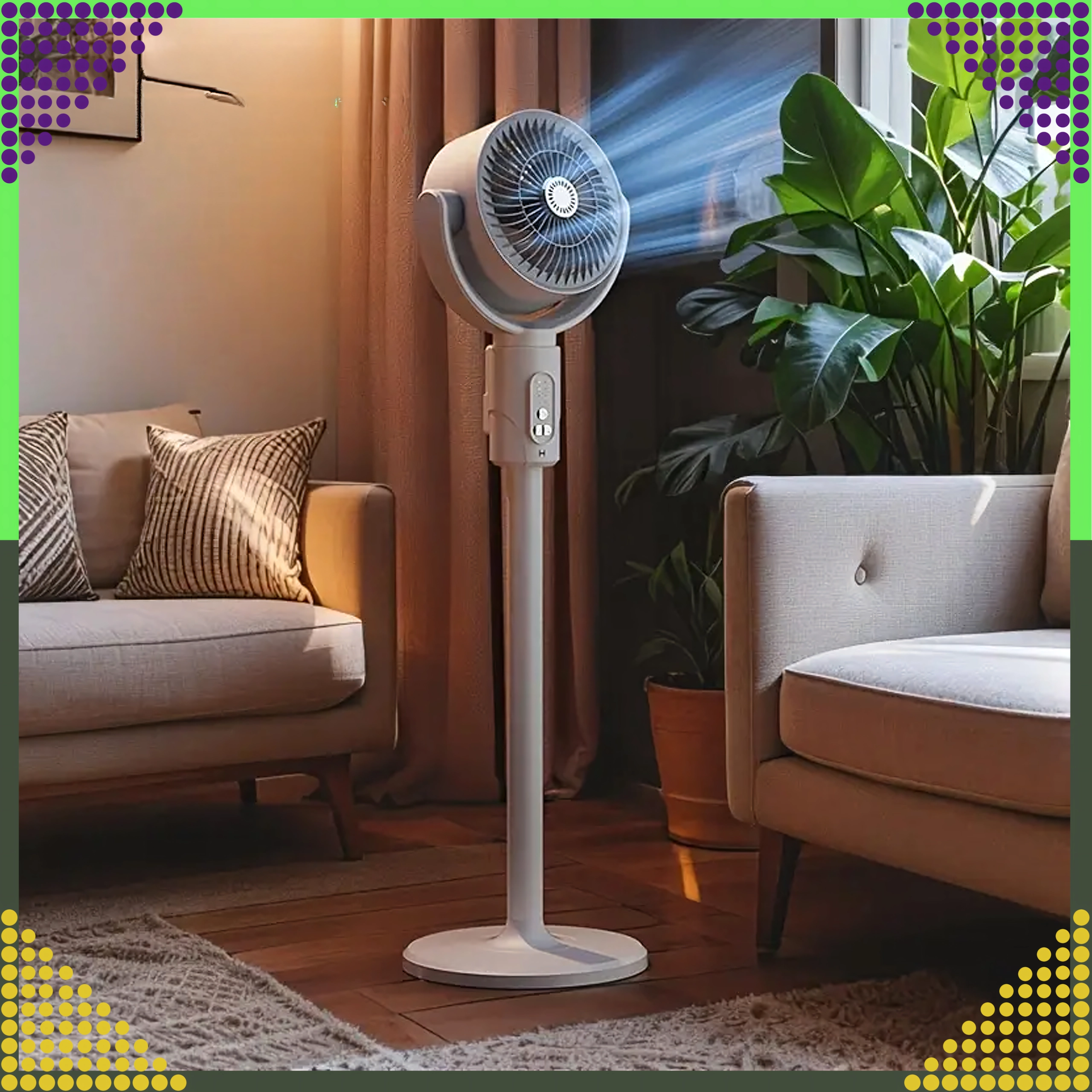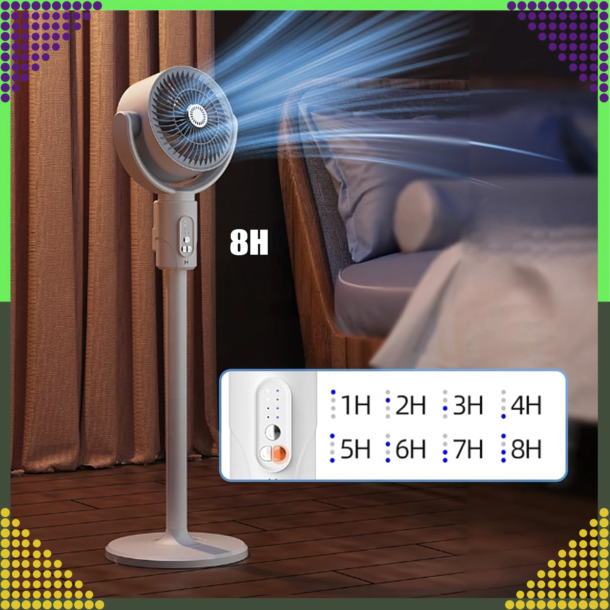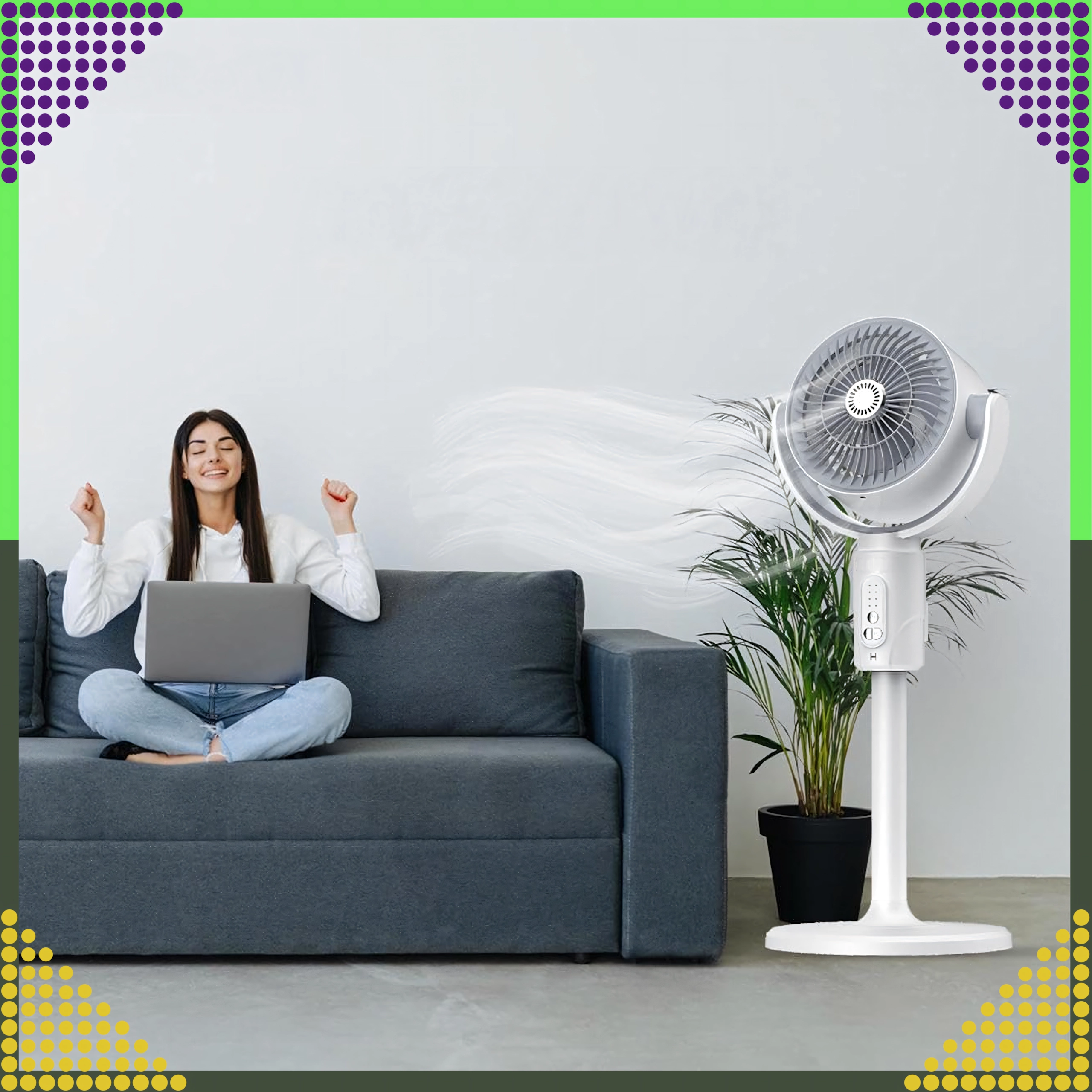Управлявайте скоростта, таймера и осцилацията от удобството на дивана с включеното дистанционно. Идеален за всекидневна и спалня.