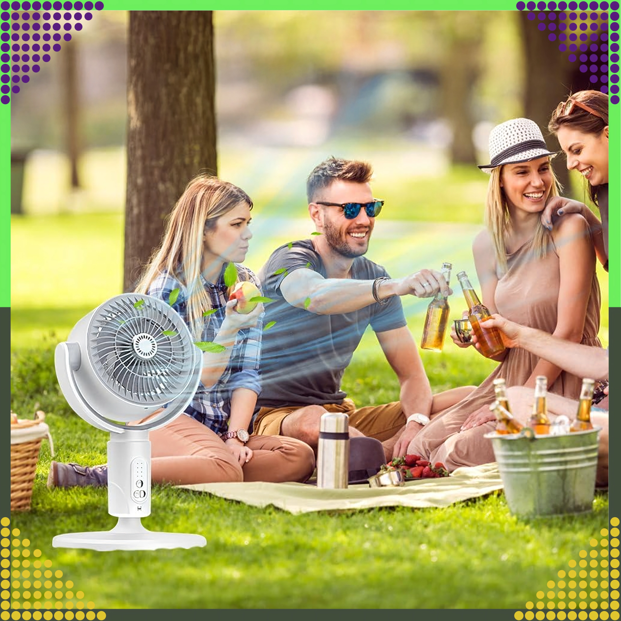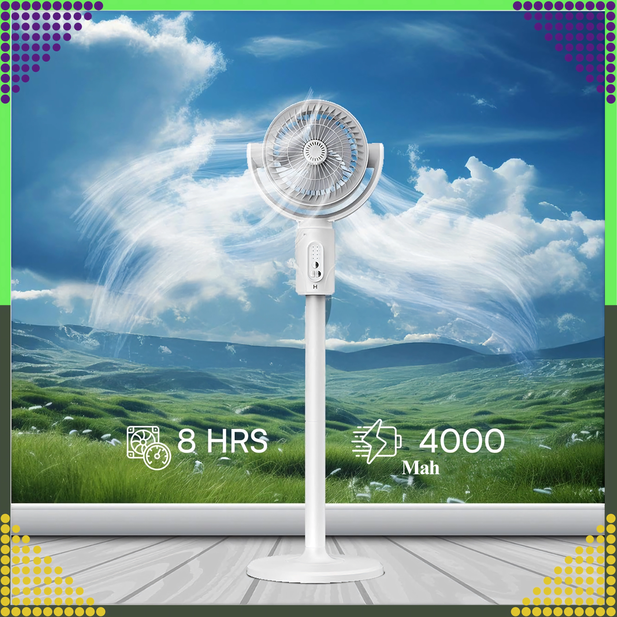Безжичният подов вентилатор 3 в 1 е практично решение за горещите дни. Комбинира комфортно дистанционно управление, тиха работа и променлива настройка на височината от около 38 до 82 см, така че е подходящ за работно бюро, всекидневна и тераса. Осцилацията осигурява равномерно охлаждане на цялото помещение.