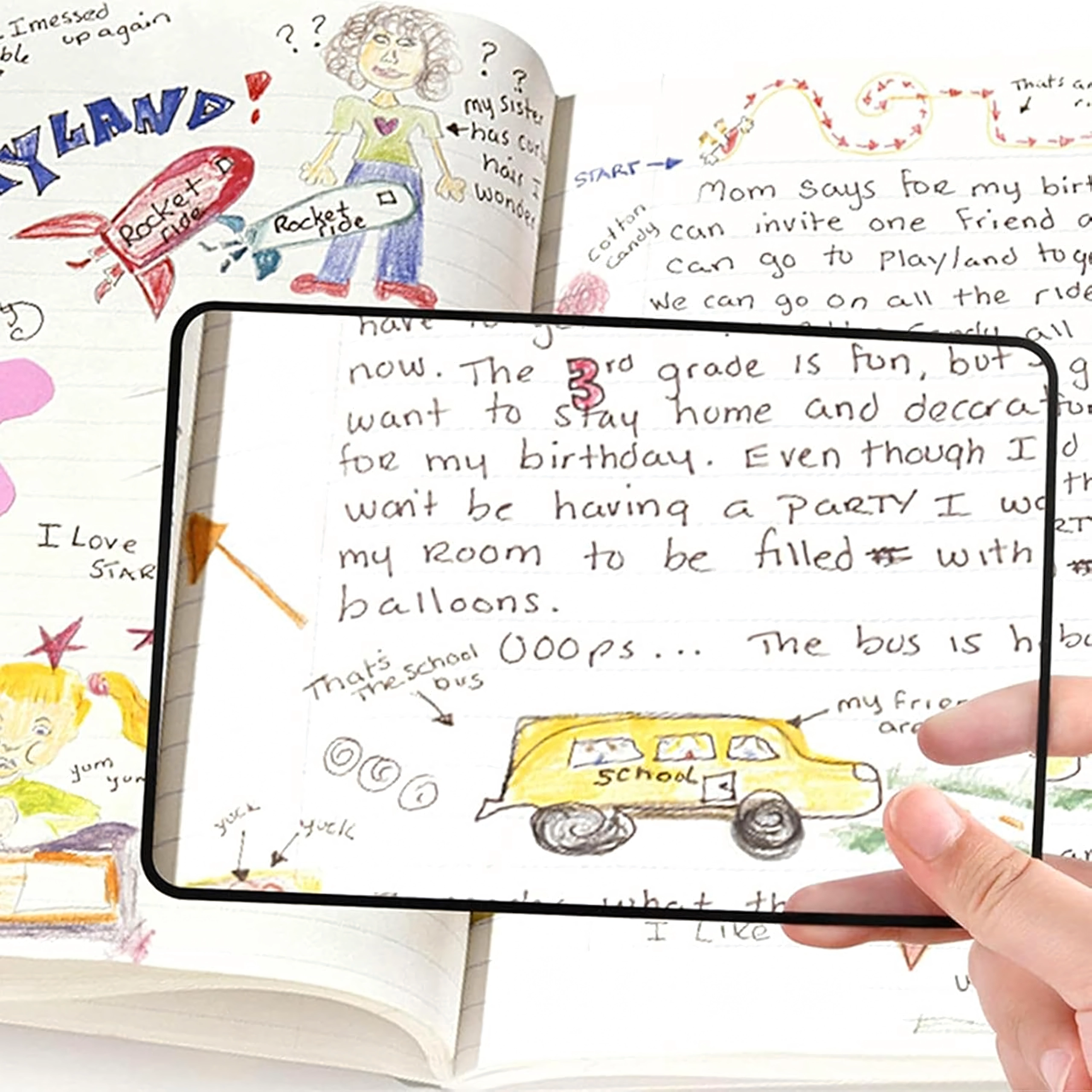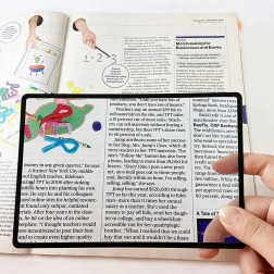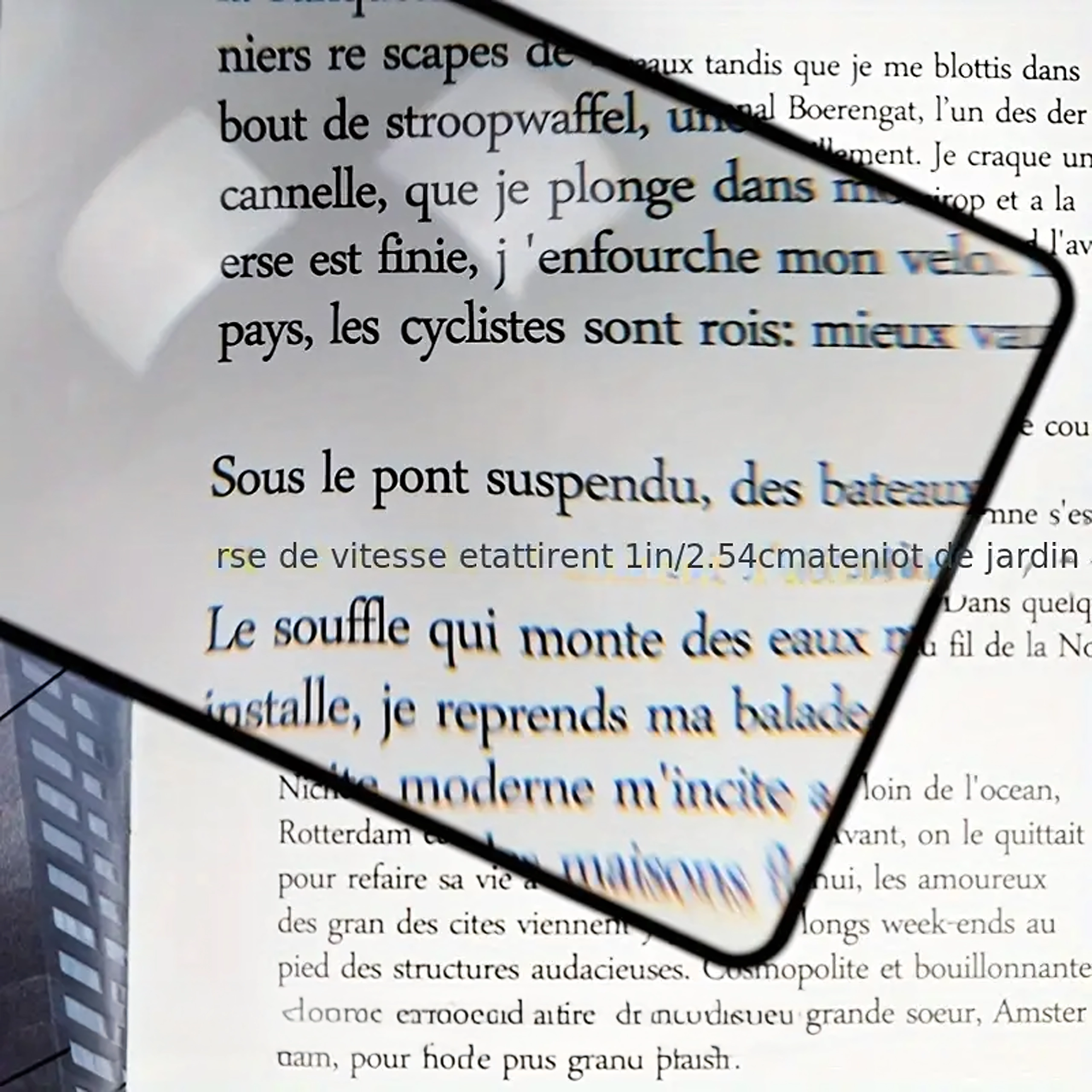 Правоъгълната леща покрива голяма част от страницата, така че виждате увеличен текст без постоянно преместване на лупата.