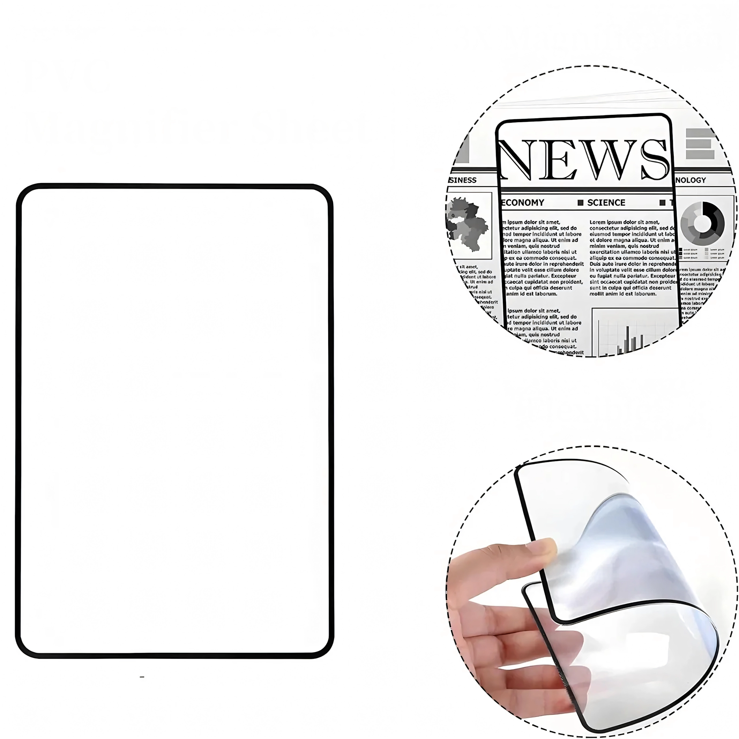 Гъвкавата пластмасова леща издържа на ежедневна употреба и предоставя ясно увеличение за комфортно четене на дребен шрифт.