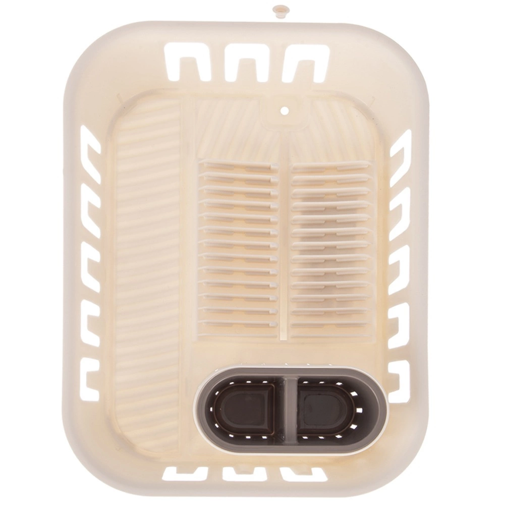 Поддържайте мивката и кухненския плот сухи и подредени. Този компактен отцедник в кремав цвят предлага премислено разпределение на пространството за чинии, чаши и прибори. Благодарение на интегрирания отток с тапа водата се отвежда директно в мивката, така че не е необходима допълнителна тава и плотът остава защитен.