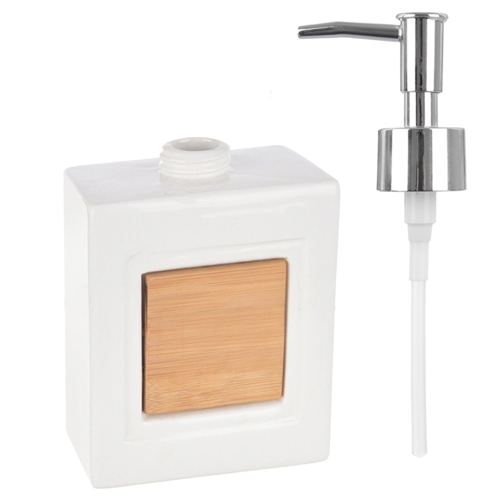 Керамично тяло със сваляща се метална помпичка за лесно пълнене и чисто дозиране на течен сапун или дезинфектант.