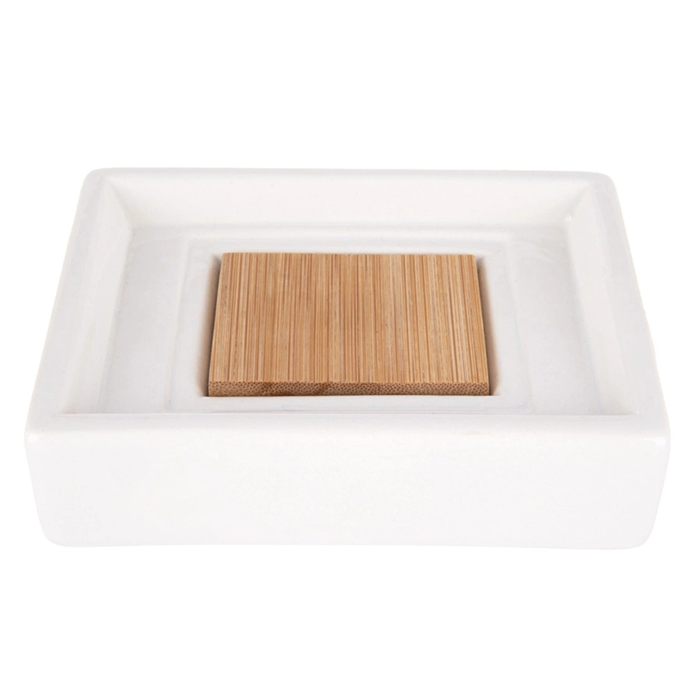 Повдигната бамбукова вложка помага за отвеждане на водата, удължава живота на сапуна и поддържа чистота около мивката.