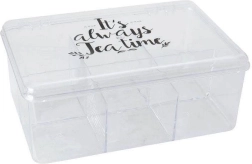 Поддържайте ред в кухнята с практичния органайзер за чай. Лекият, но здрав материал и плътното затваряне помагат да се запазят свежестта и ароматът на пакетчетата чай. Благодарение на шестте отделни отделения лесно сортирате различните видове чайове без смесване на ароматите.