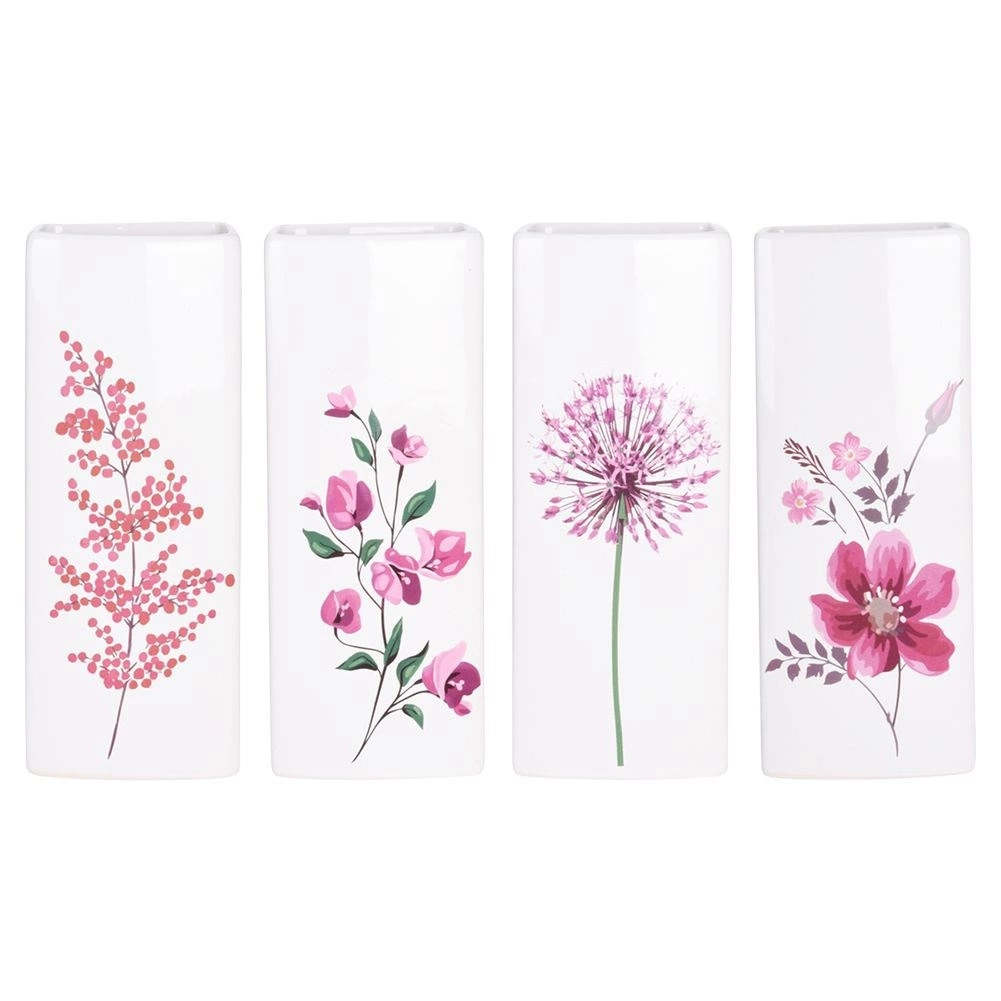 Бялата глазура и различните розови флорални мотиви изглеждат изчистено и декоративно – подходящи за дневна, спалня и детска стая.