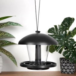 Практична хранилка от устойчив пластмасов материал, идеална за семена и насипни смеси. Прозрачният резервоар ви позволява веднага да видите нивото на храната, докато широкият навес защитава семената от валежи. Минималистичният дизайн подхожда на градина, тераса и балкон и привлича дребни пойни птици през цялата година.