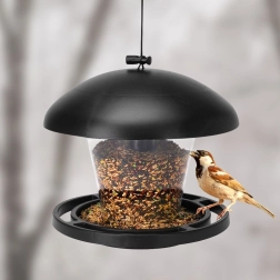 Прозрачното тяло на хранилката позволява мигновено да проверите нивото на семената и навреме да допълните, за да имат птиците винаги какво да кълват.