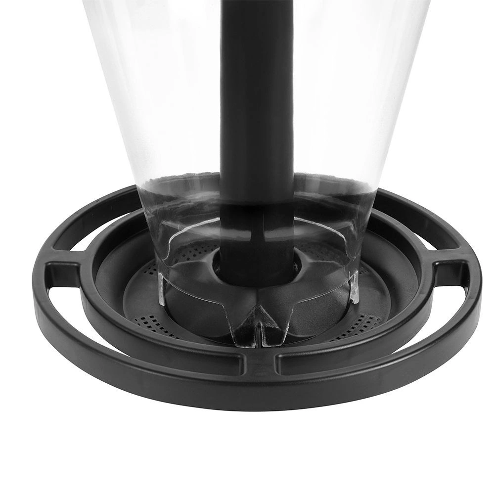 - Пластмаса (прозрачен резервоар, черна основа и капак)