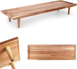Тази универсална сервираща дъска с крачета се отличава с изчистен дизайн и функционалност. Благодарение на здравото акациево дърво е устойчива на влага и деформации, идеална за ежедневна употреба в кухнята и при гости. Повдигнатите ръбове задържат храната на място и улесняват пренасянето.