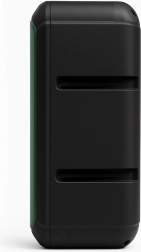 Три предни драйвера зад метална решетка осигуряват чисти високи и плътни баси. Идеален за домашно слушане и външни партита.