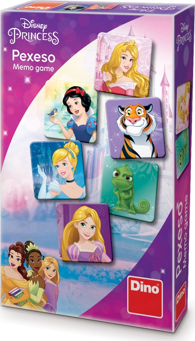 Популярната игра мемо с мотиви на DISNEY Принцеси носи забавление за цялото семейство. Намерете еднаквите двойки карти, тренирайте памет и концентрация и се насладете на бърза семейна игра, изпълнена с красиви илюстрации. Чешки продукт от Dino Toys.
