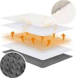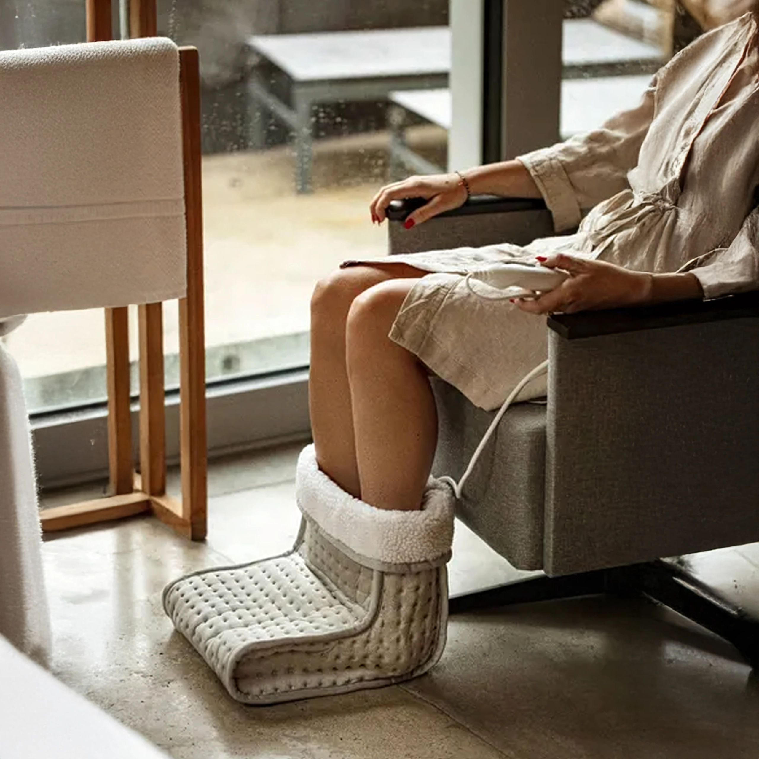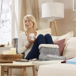 С 9 степени на нагряване избирате точно такава топлина, каквато ви е необходима – от нежно затопляне до интензивно сгряване след завръщане от студа. Таймерът (60–240 мин) с автоматично изключване повишава безопасността и пести енергия. Конструкция за двата крака, меко подплащане и дишащи материали осигуряват комфорт дори при по-дълго седене.