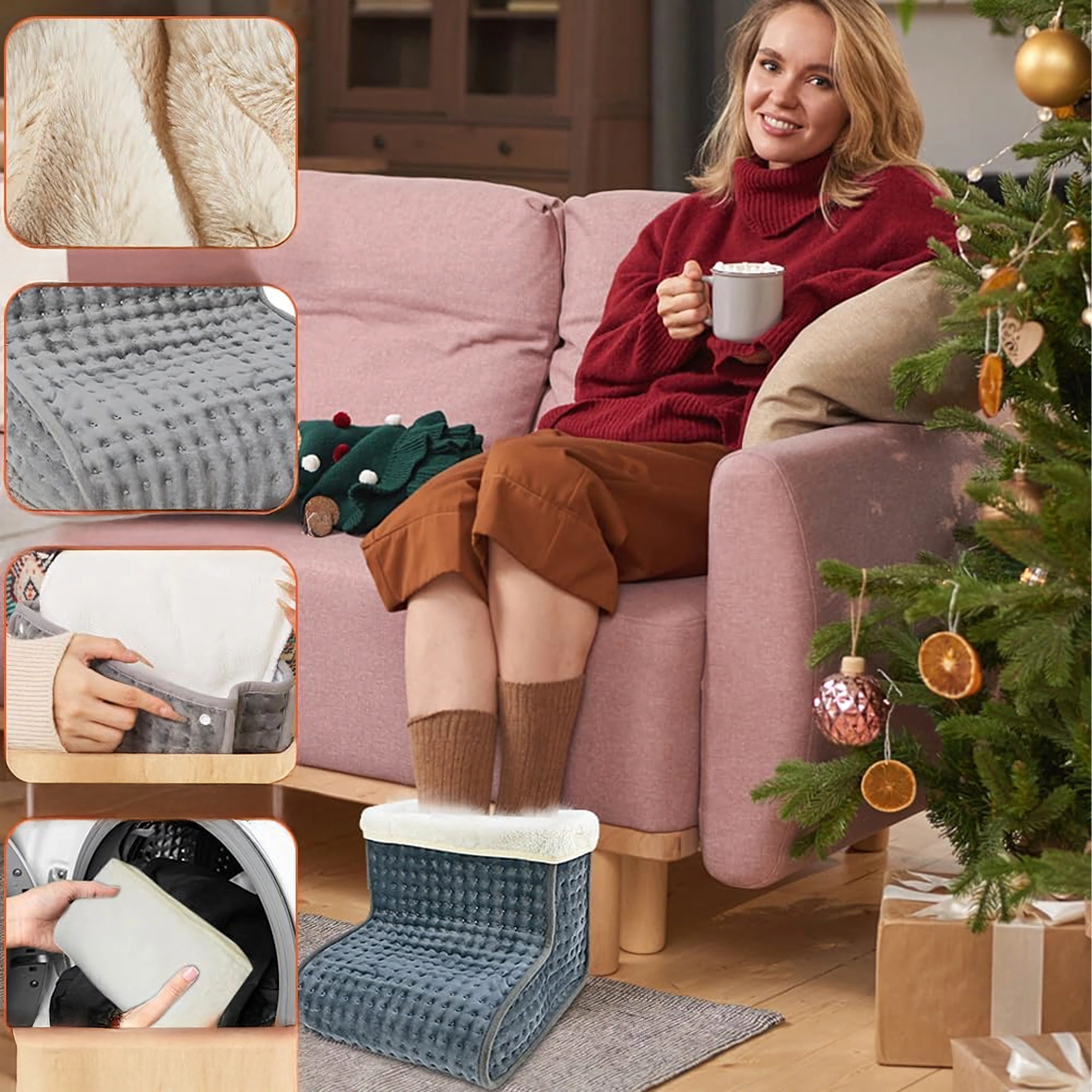 Електрическият нагревател за крака е проектиран за максимален комфорт по време на почивка пред телевизора, на работното бюро или на дивана. Меката плюшена вътрешност с приятна подплата разпределя равномерно топлината и помага бързо да стопли студените стъпала. Интуитивното дистанционно с дисплей позволява прецизна настройка на температурата и продължителността на загряване за безопасна и безгрижна употреба.