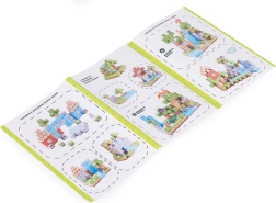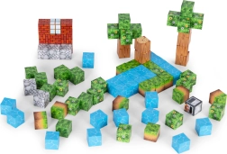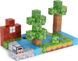 Текстурираните повърхности на кубчетата, напомнящи трева, вода, дърво или камък, вдъхновяват за създаване на дървета, пътечки, реки и къщички – въображението няма граници.