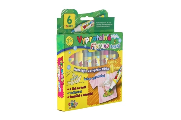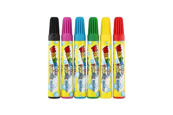 Комплектът съдържа 6 маркера – червен, жълт, син, зелен, розов и черен. Перфектни за украса на тениски, чанти и аксесоари.