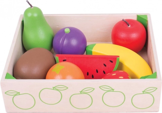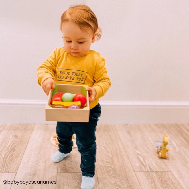 В тази кутия ще откриете разнообразни дървени плодове, като банани, ябълки, ягоди и круши. За децата това е страхотна играчка, която не само забавлява, но и ги образова за значението на здравословното и балансирано хранене. Играта е проектирана за развитие на фината моторика, а по време на игра децата научават откъде идва храната им и как се приготвя.