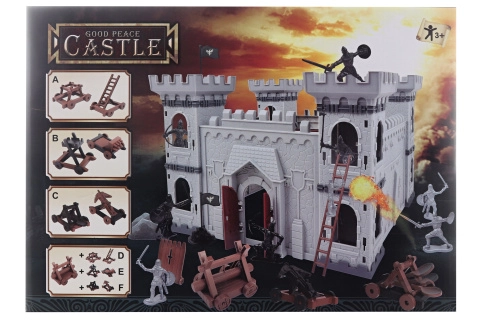 Този пълен комплект за игра носи на децата приключения от средновековни обсаади. Здравият пластмасов замък с кули и мерлони е допълнен от фигурки на рицари и оръжия, така че децата могат да създават свои собствени истории и стратегии. Благодарение на компактните размери замъкът се пренася и съхранява лесно.