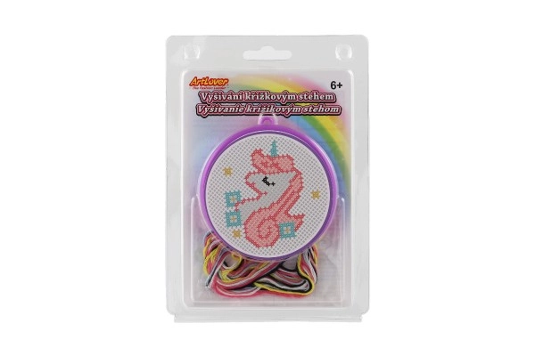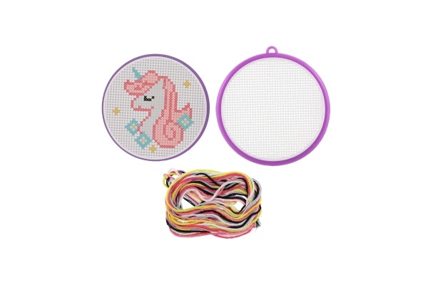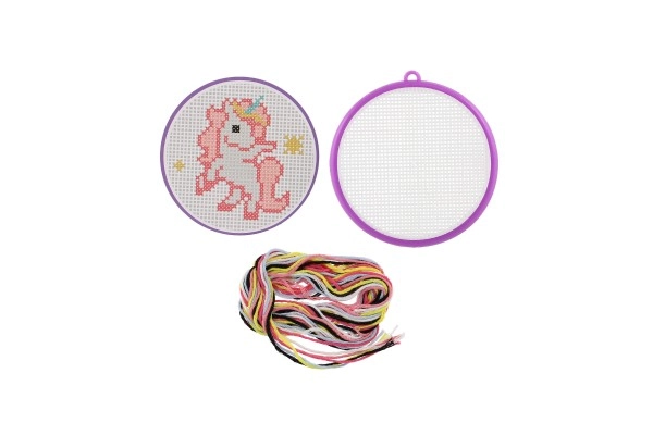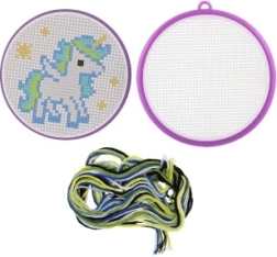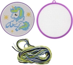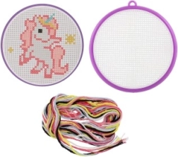 Открийте магията на ръчните занимания с този комплект за бродиране с кръстат бод с мотив на еднорог. Идеален за начинаещи и деца от 6 години – съдържа всичко необходимо: рамка, схема, игла и 6 цветни конеца за лесно и забавно начало в бродирането.