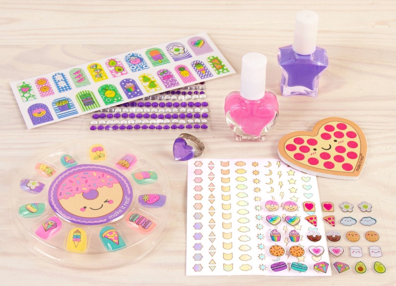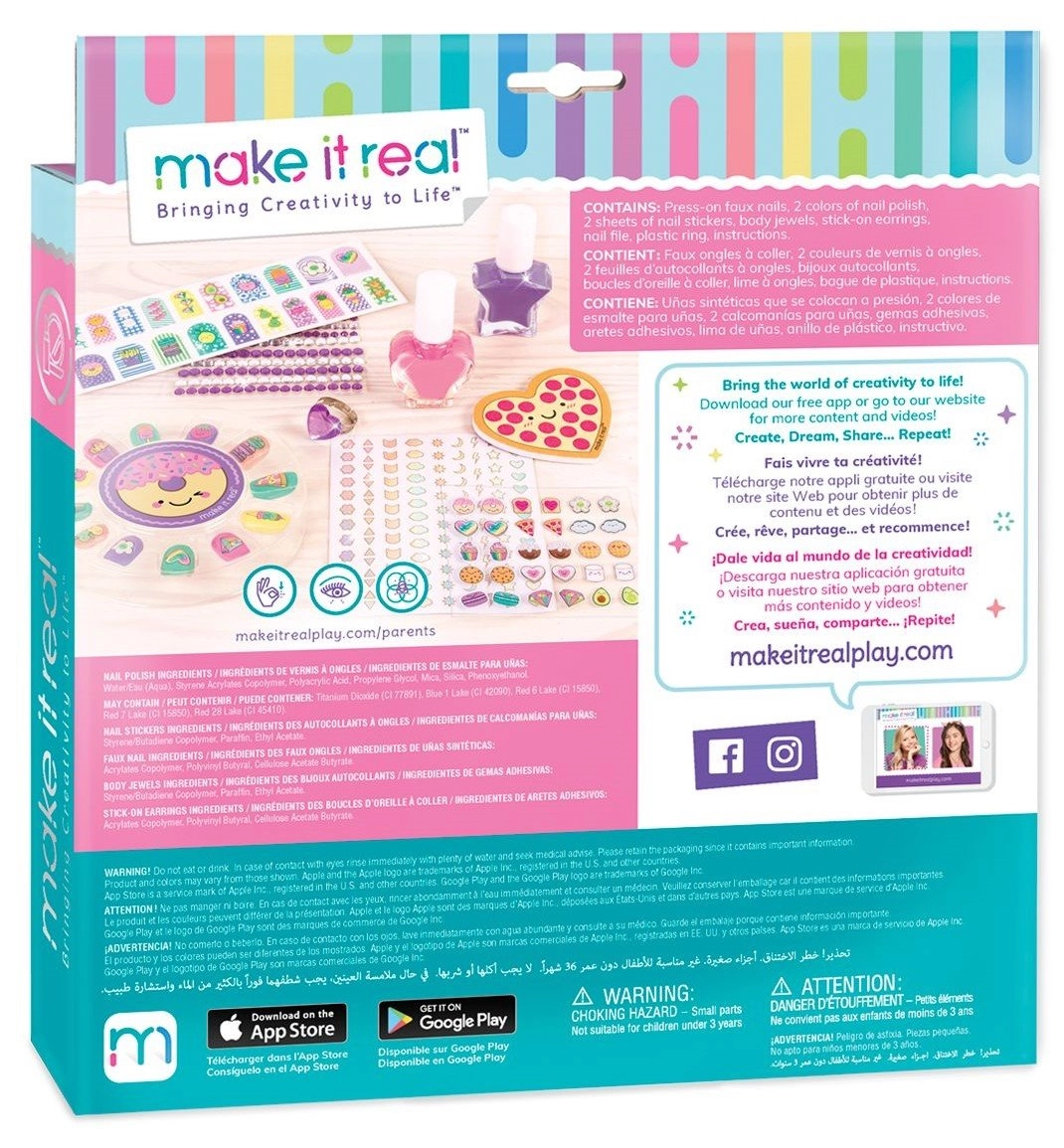 Открийте магията на домашния маникюр с креативния комплект Make It Real! В опаковката ще намерите всичко за красиво лакирани нокти – 2 лака за нокти, стикери, изкуствени нокти, декоративни камъчета и аксесоари, благодарение на които ноктите ви ще бъдат още по-блестящи. Идеално забавление и стил за деца от 8 години.