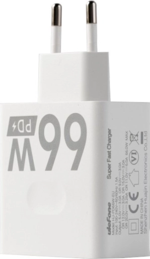 Това мощно бяло зарядно е идеално за телефони от серията Ulefone ARMOR и други устройства с USB‑C. Благодарение на мощността от 66 W значително съкращава времето за зареждане и осигурява стабилна енергия у дома и по време на път.