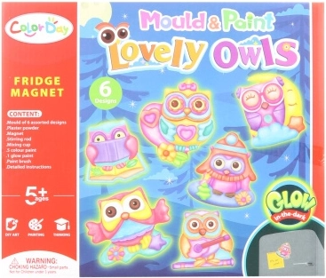 Креативен комплект за деца, с който лесно ще изработят собствени магнитчета във форма на совички, които светят в тъмното. Комплектът съдържа всичко необходимо – гипс, форма с 6 мотива, бои, четка, магнити и инструкции. Идеално забавление за деца от 5 години и прекрасен подарък за малките творци.