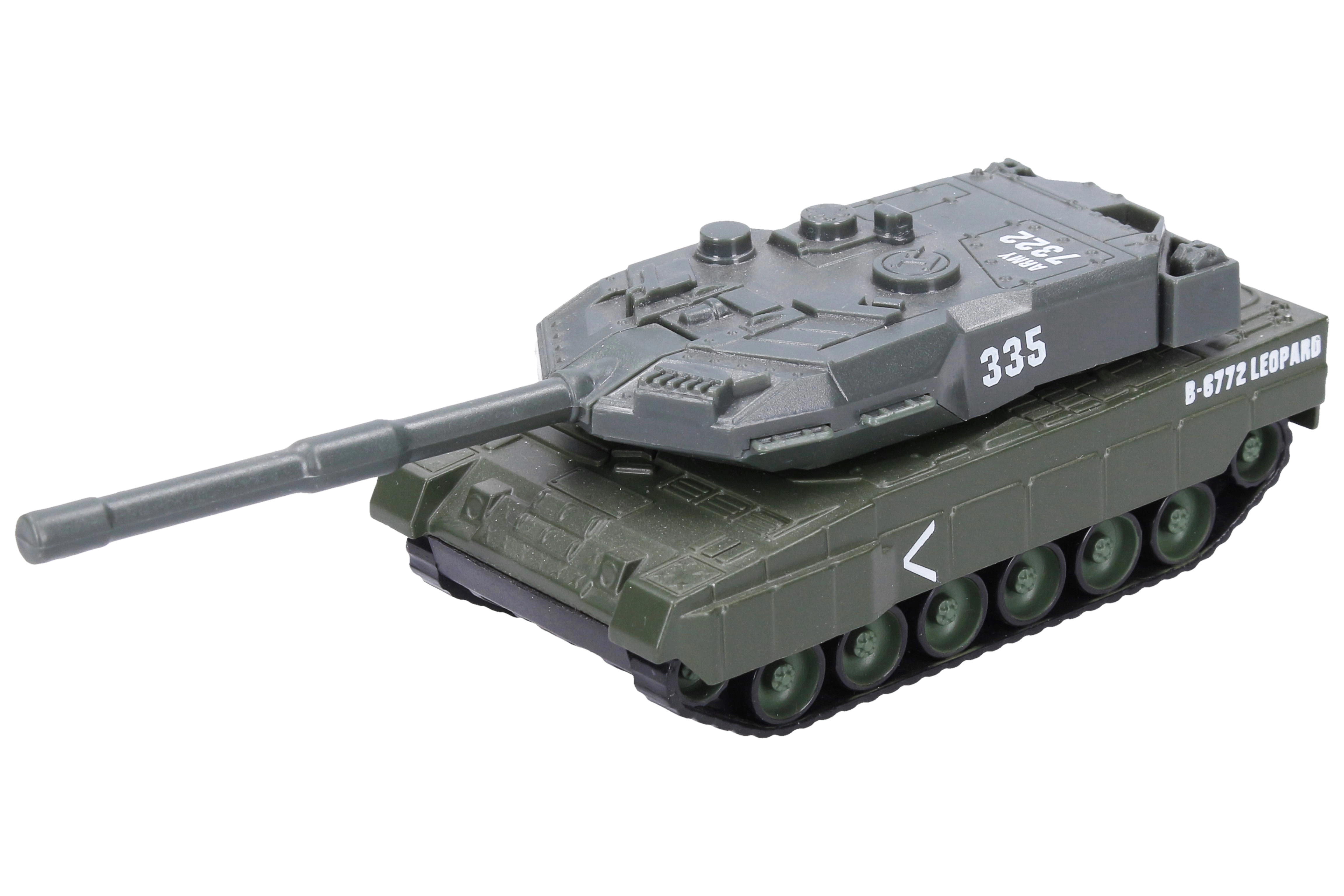 Този детайлно изработен метален танк носи на децата много действие и въображение. Благодарение на здравото метално тяло издържа на интензивна игра и е чудесно допълнение към всяка детска армия. Компактният размер 14,5 см е идеален за ръката и за път.