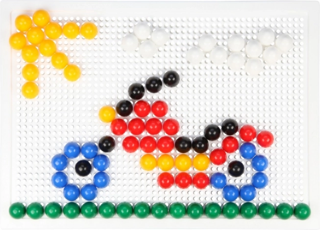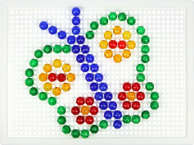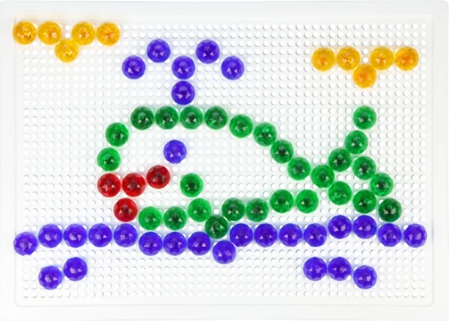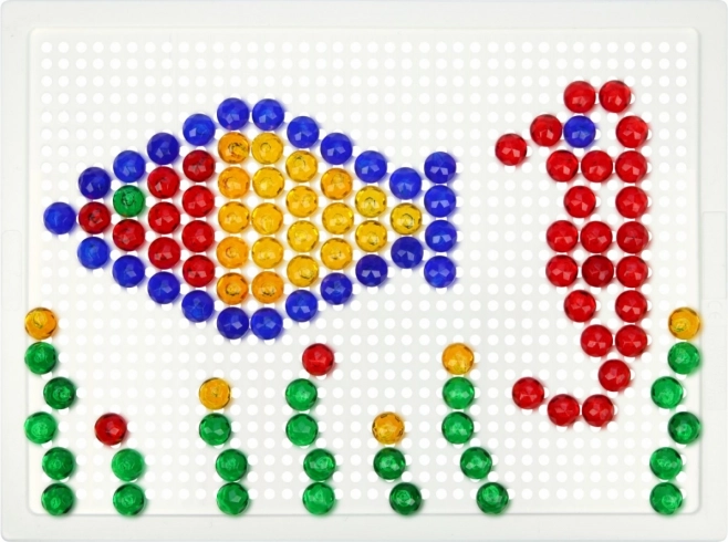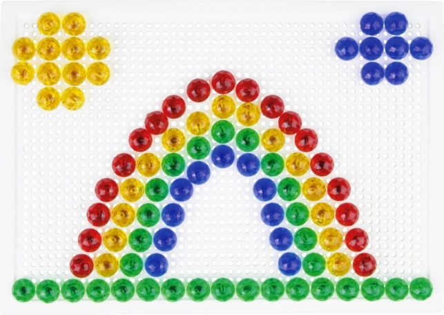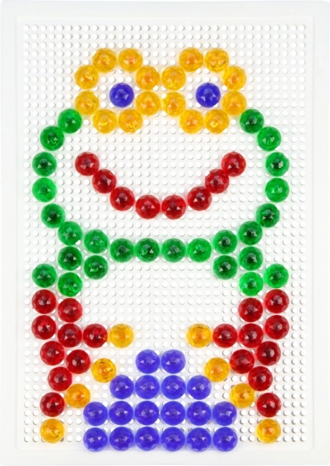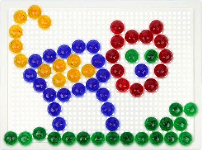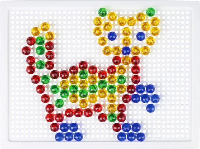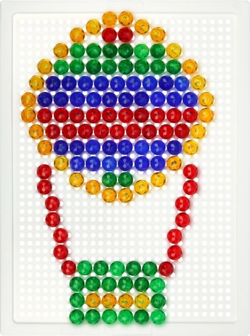 Тази кристална мозайка е идеален избор за първи творчески стъпки. Благодарение на прозрачните цветни габърчета върху бялата подложка се получават ярки и игриви картинки. Децата упражняват търпение, координация око–ръка и се учат да разпознават цветове и форми.